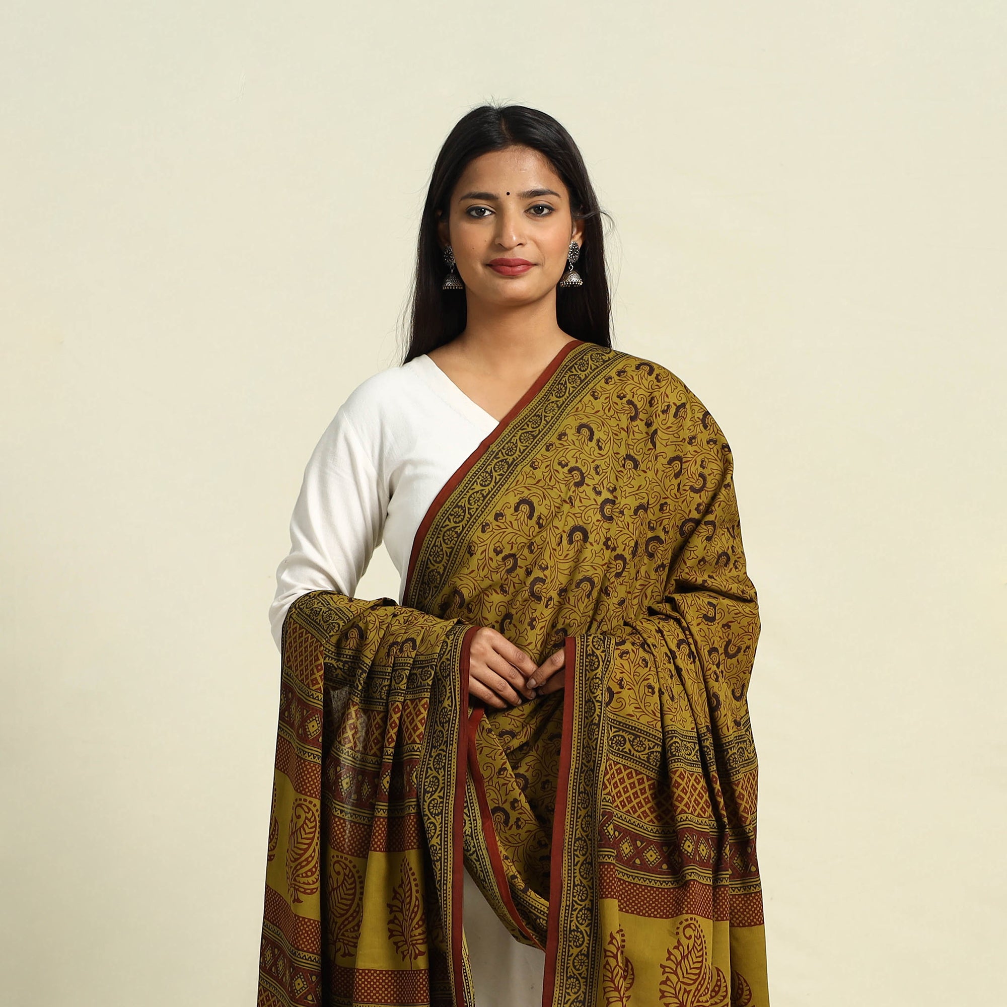 Embrace timeless artistry with this exquisite brown mul cotton bagh block print dupatta, skillfully crafted by master artisan Umar Faruk Khatri. Originating from the culturally rich Dhar district of Madhya Pradesh, this dupatta carries the legacy of bagh block printing, celebrated for its intricate motifs and deep, natural hues. The breathable mul cotton ensures effortless draping, making it a versatile addition to your wardrobe.