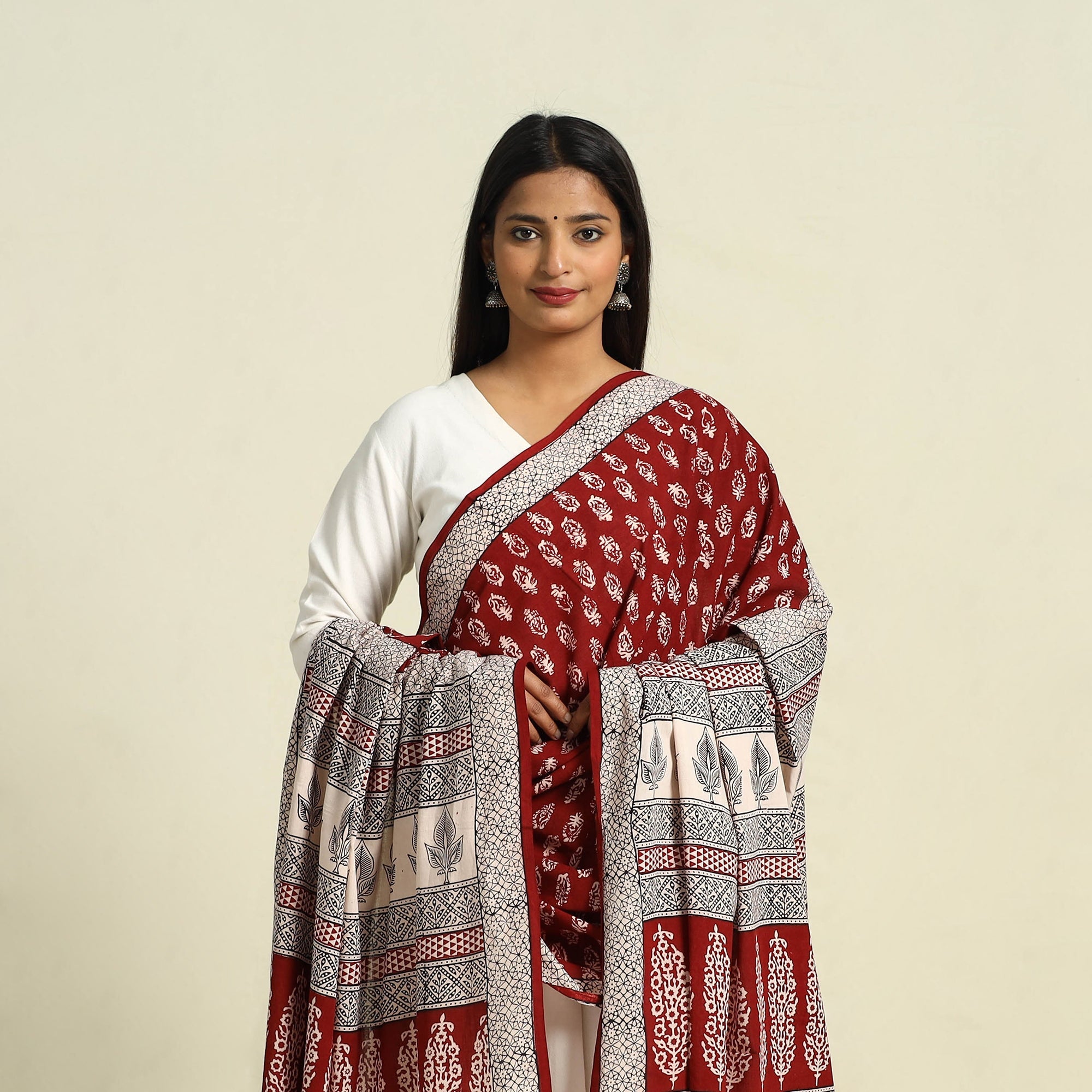 Embrace timeless artistry with this exquisite red mul cotton bagh block print dupatta, skillfully crafted by master artisan Umar Faruk Khatri. Originating from the culturally rich Dhar district of Madhya Pradesh, this dupatta carries the legacy of bagh block printing, celebrated for its intricate motifs and deep, natural hues. The breathable mul cotton ensures effortless draping, making it a versatile addition to your wardrobe.