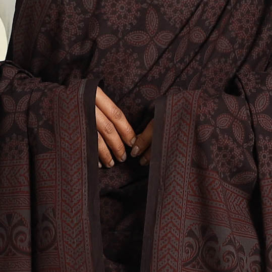 Embrace timeless artistry with this exquisite brown mul cotton bagh block print dupatta, skillfully crafted by master artisan Umar Faruk Khatri. Originating from the culturally rich Dhar district of Madhya Pradesh, this dupatta carries the legacy of bagh block printing, celebrated for its intricate motifs and deep, natural hues. The breathable mul cotton ensures effortless draping, making it a versatile addition to your wardrobe.