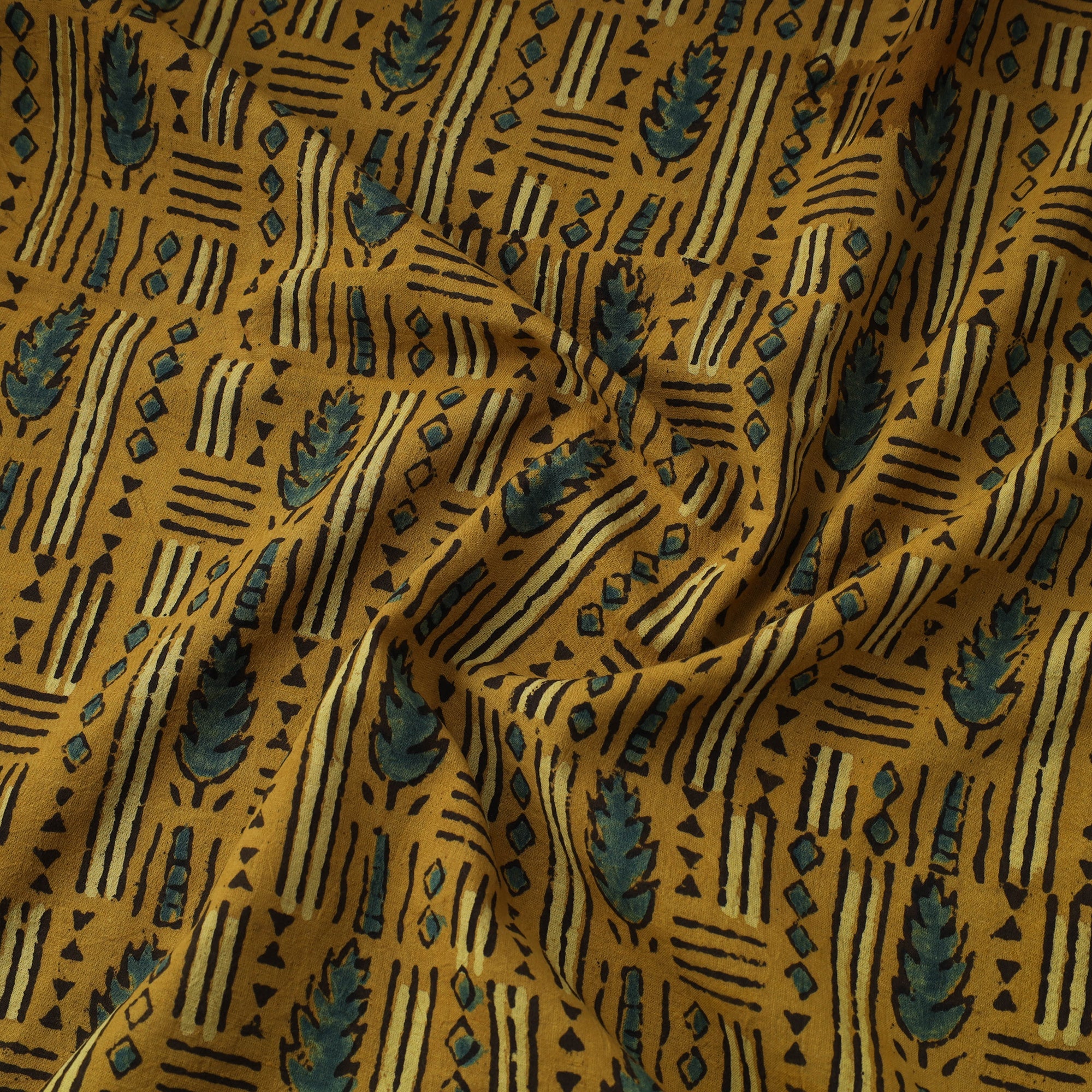 • Yellow Natural Dyed 3 Kaam Block Print Cotton Ajrakh Fabric