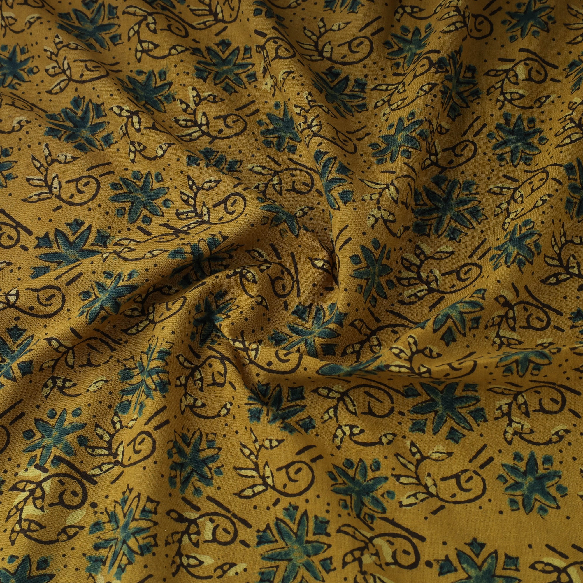 • Yellow - Natural Dyed 3 Kaam Block Print Cotton Ajrakh Fabric 50