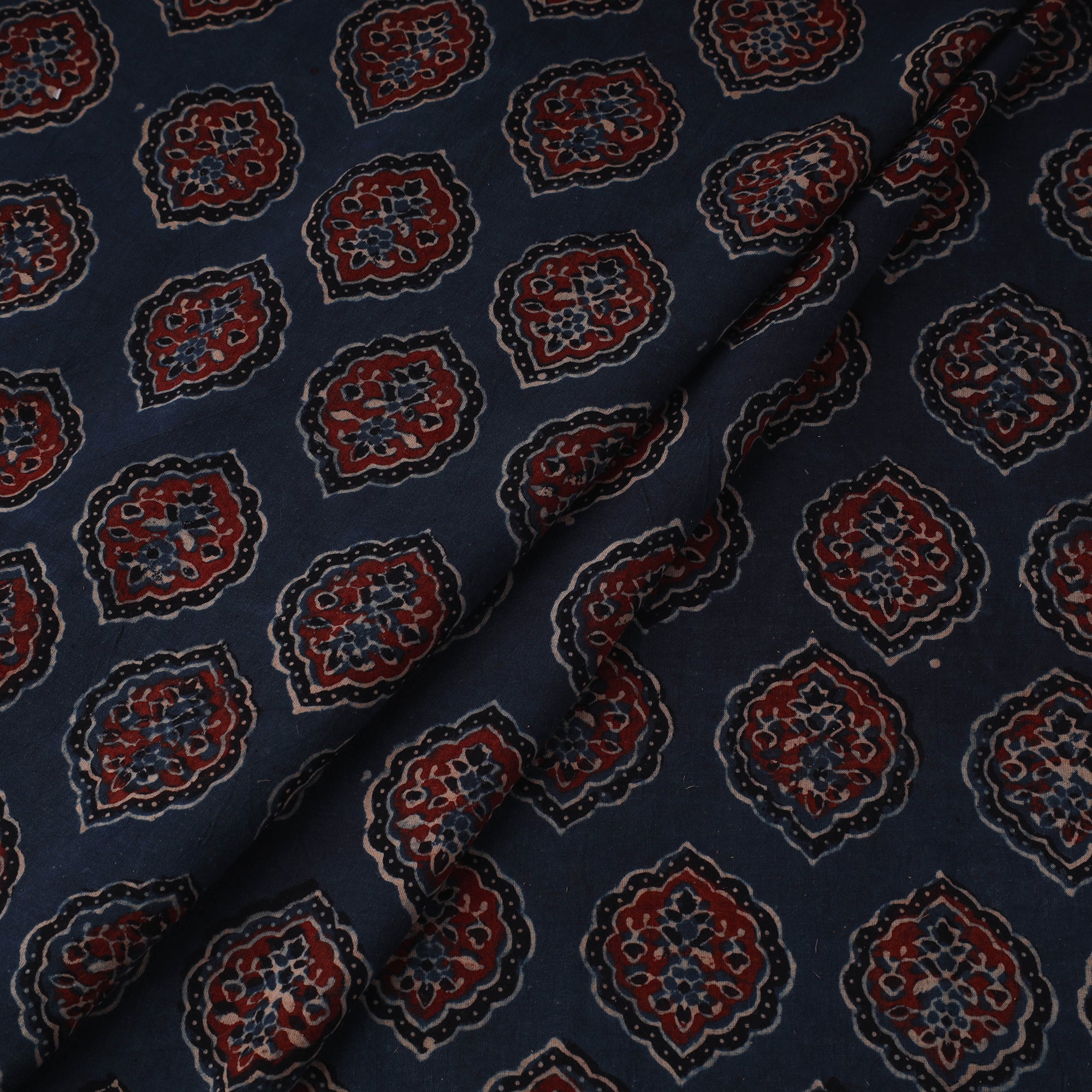 • Blue Natural Dyed 3 Kaam Block Print Cotton Ajrakh Fabric
