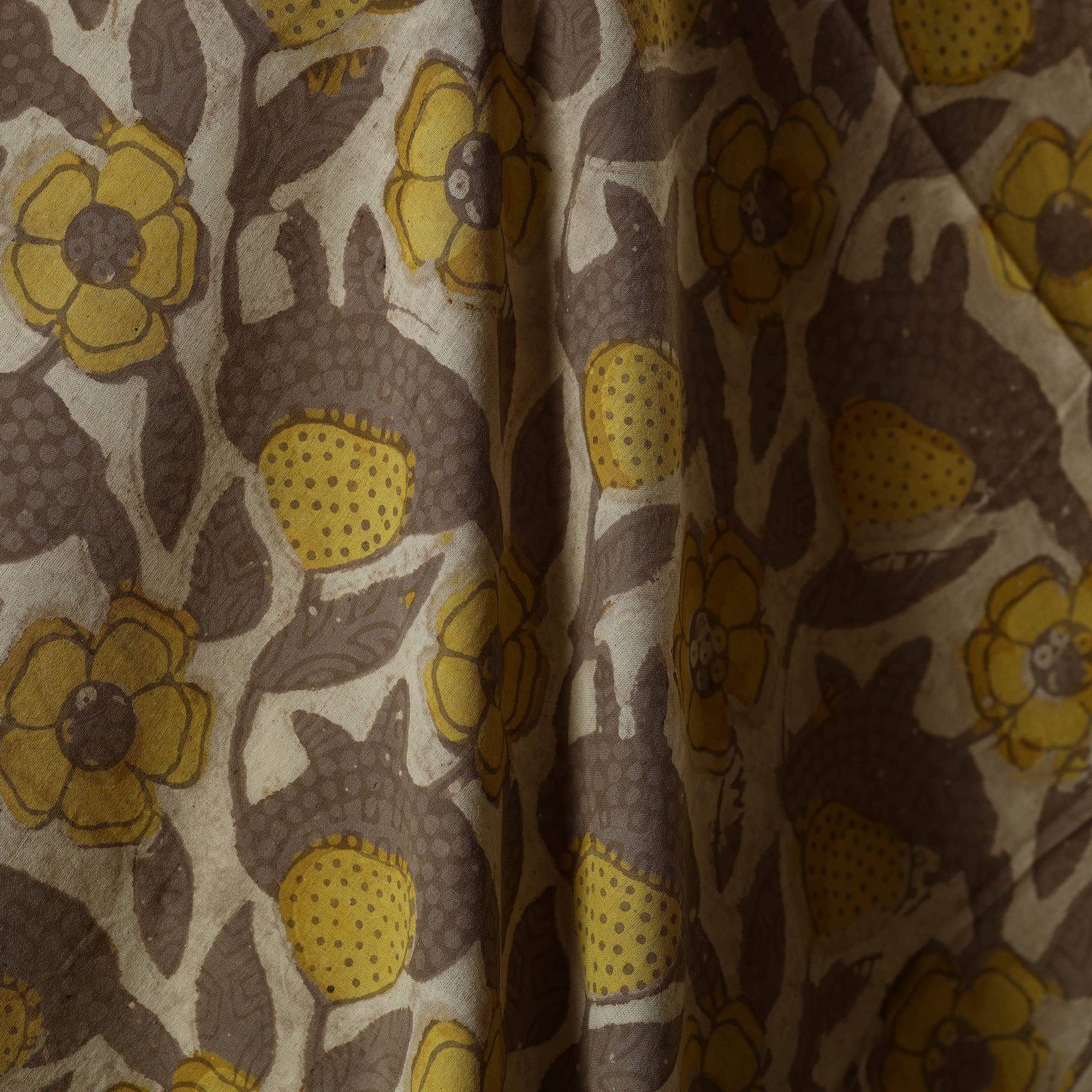 This fine-quality brown bagru dabu hand block-printed cotton fabric is crafted using natural dyes and traditional resist-printing techniques from the Bagru region of Rajasthan. It celebrates the timeless legacy of Indian textile artistry and is ideal for making graceful kurtas, airy dresses, or elegant home accents.
