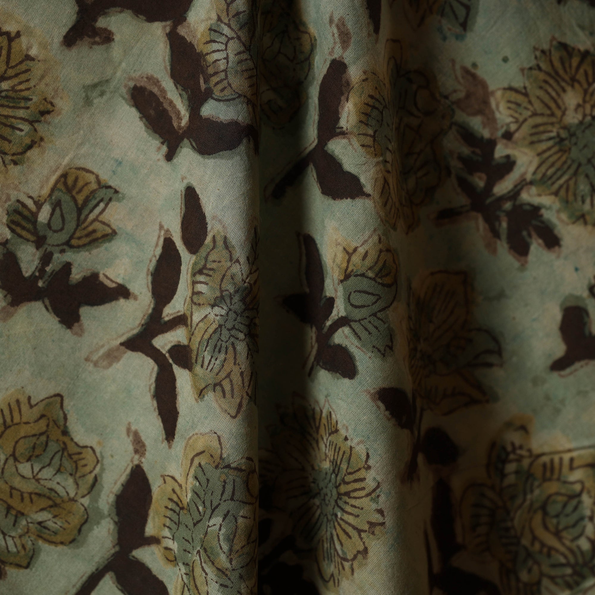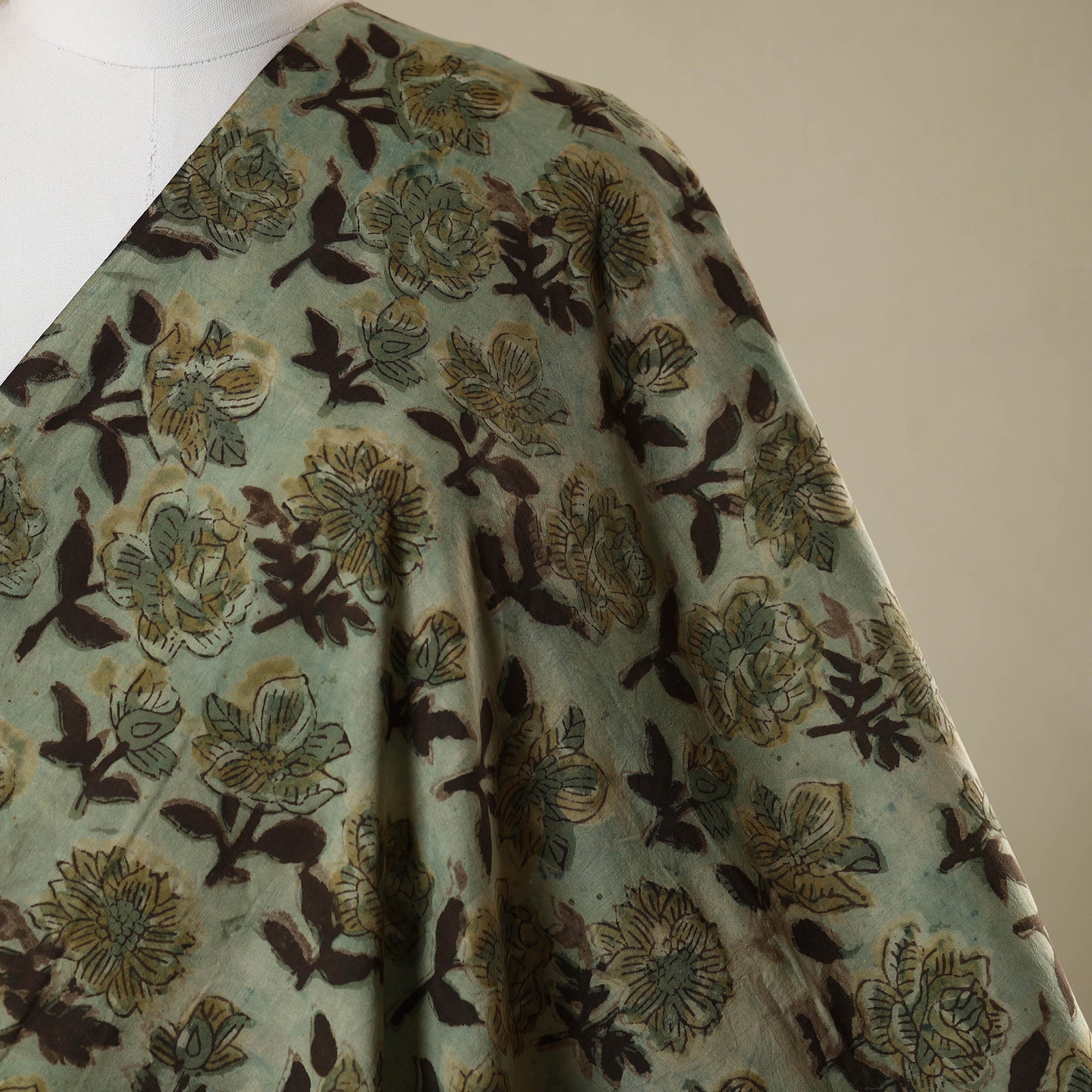This fine-quality green bagru dabu hand block-printed cotton fabric is crafted using natural dyes and traditional resist-printing techniques from the Bagru region of Rajasthan. It celebrates the timeless legacy of Indian textile artistry and is ideal for making graceful kurtas, airy dresses, or elegant home accents.