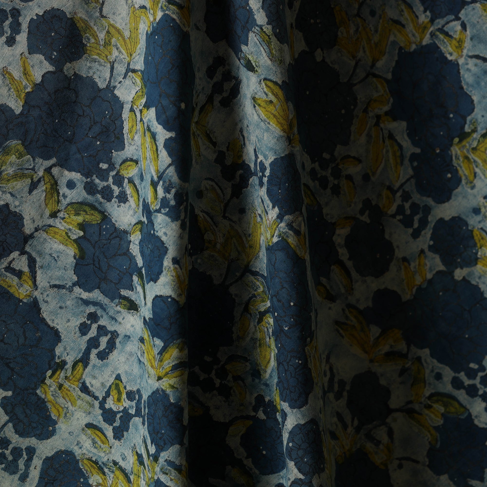 This fine-quality blue bagru dabu hand block-printed cotton fabric is crafted using natural dyes and traditional resist-printing techniques from the Bagru region of Rajasthan. It celebrates the timeless legacy of Indian textile artistry and is ideal for making graceful kurtas, airy dresses, or elegant home accents.