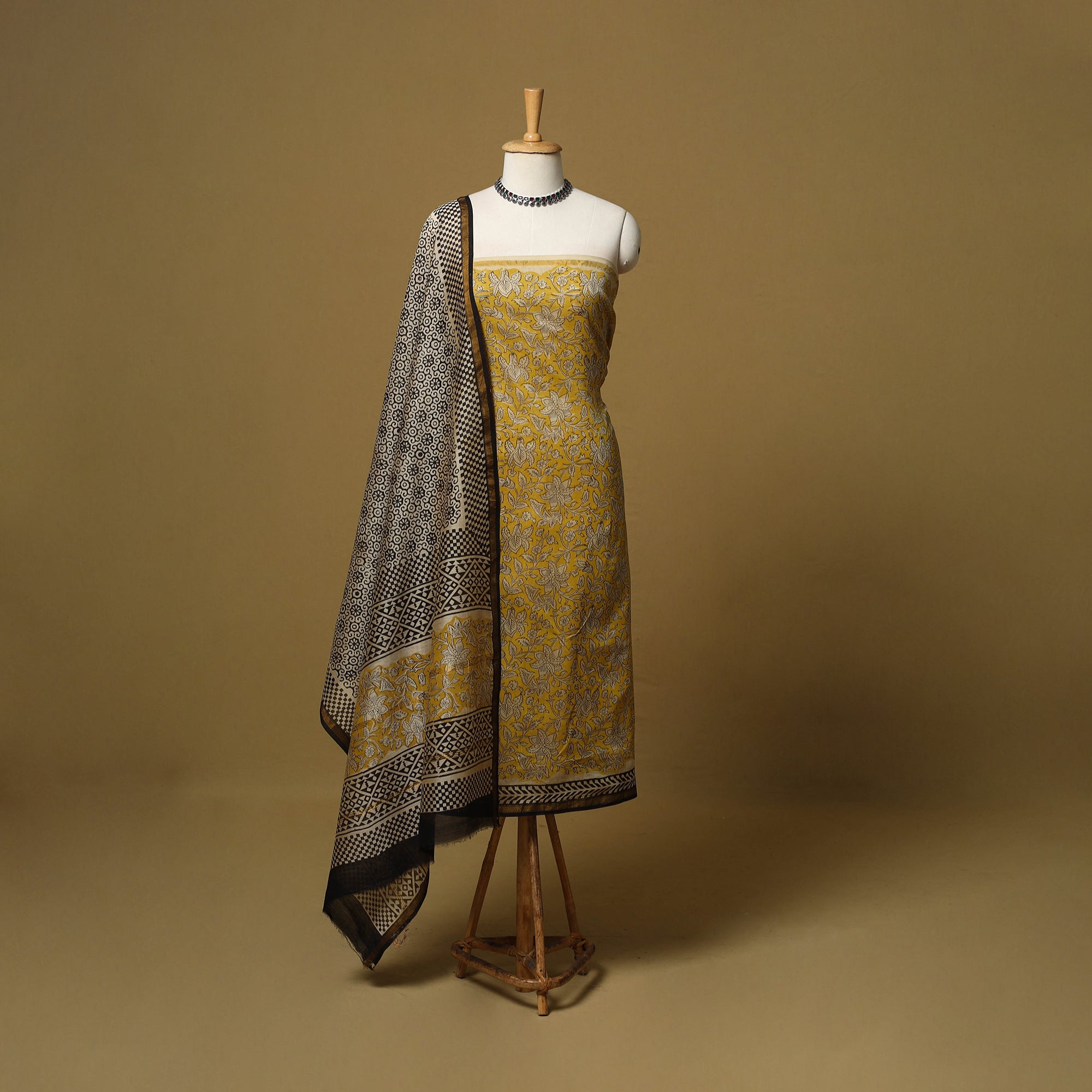 • Natural dyed bagru chanderi silk 3pc unstitched dress