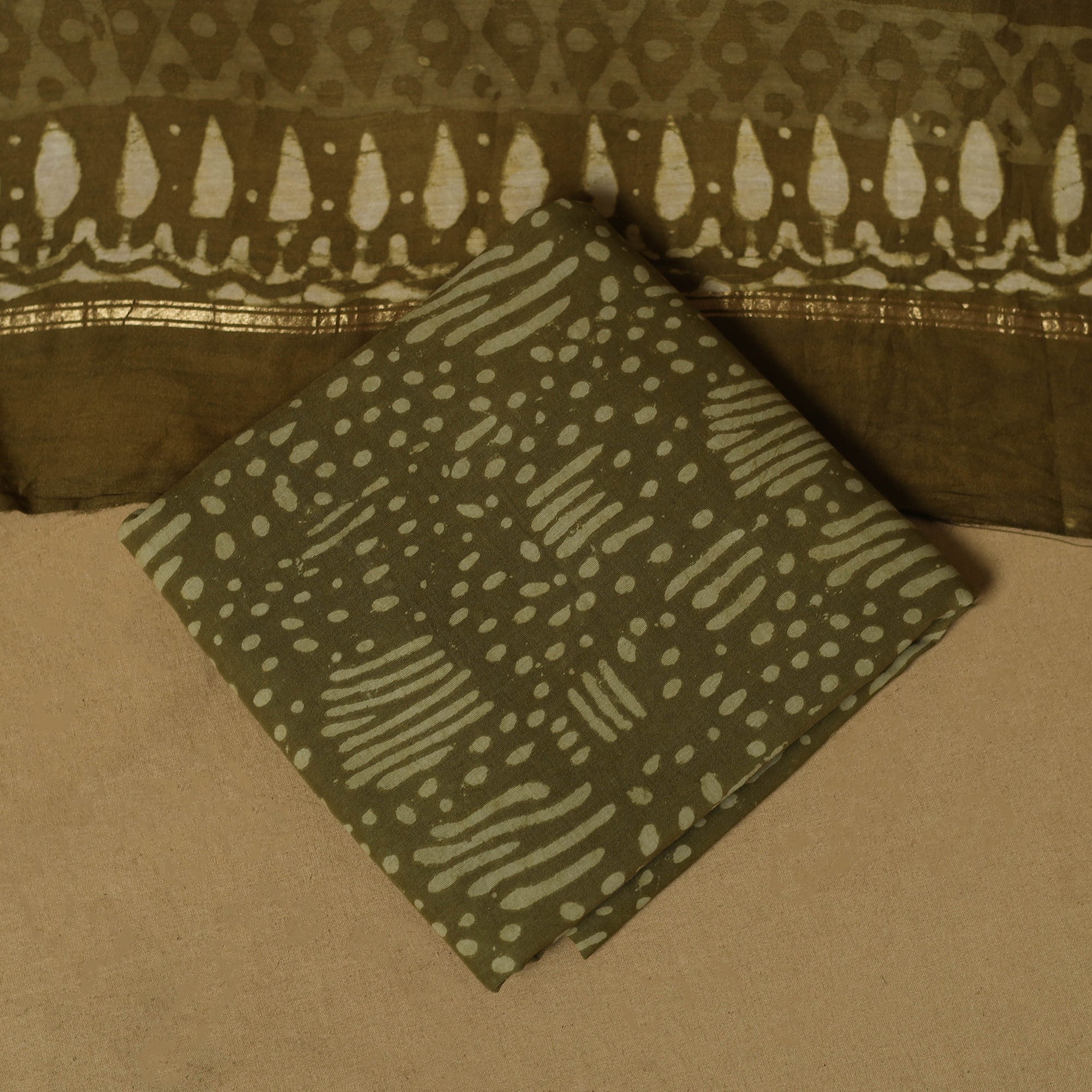 • Natural dyed bagru chanderi silk 3pc unstitched dress