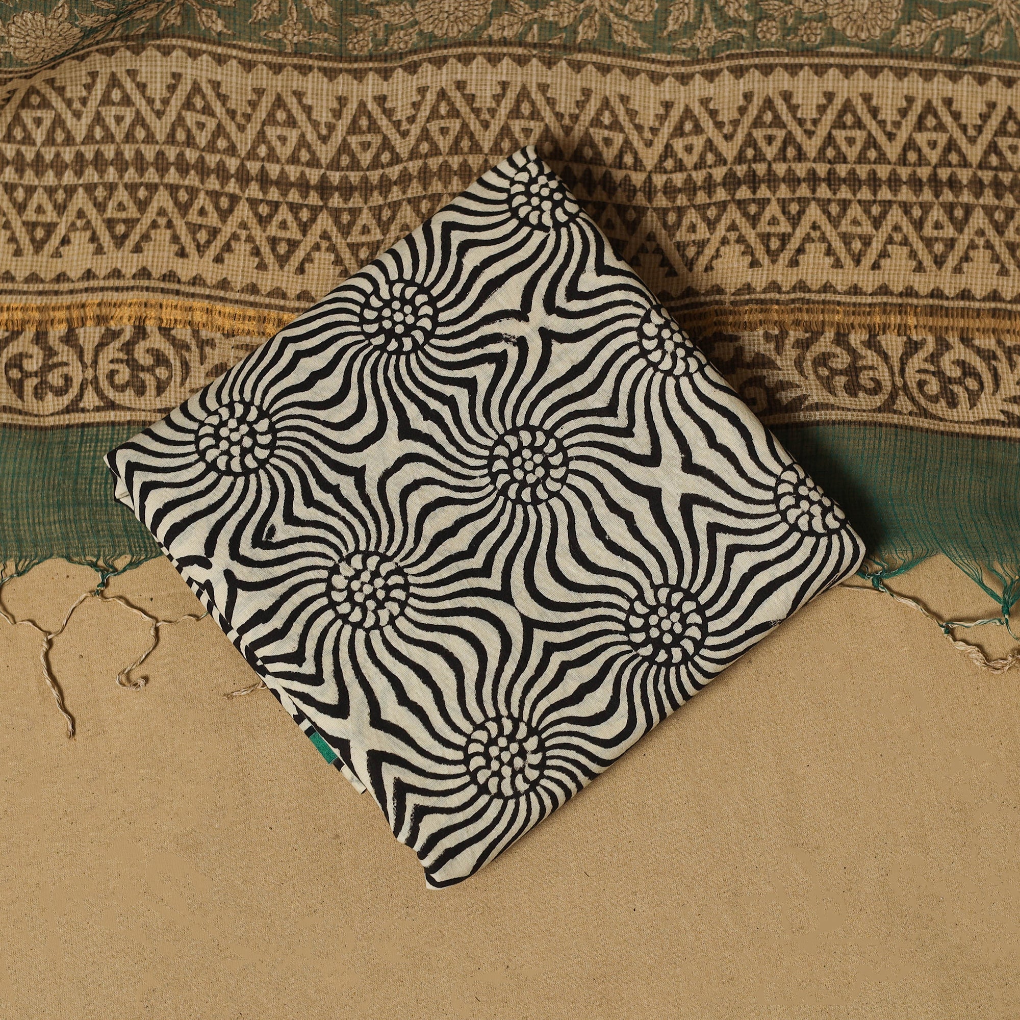 Natural Dyed Bagru Block Print Cotton 3pc Unstitched Dress Material 05