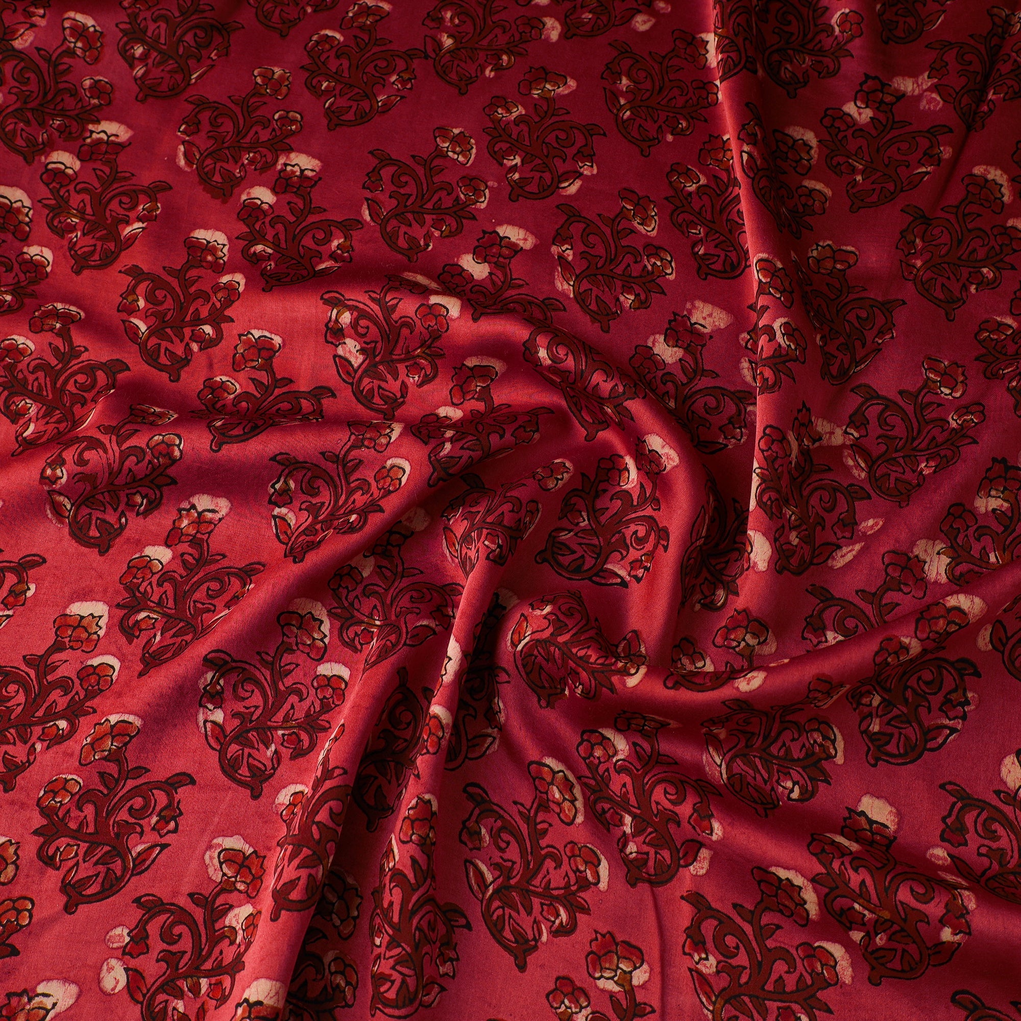Red - Natural Dyed Bagru Print Modal Silk Fabric 06