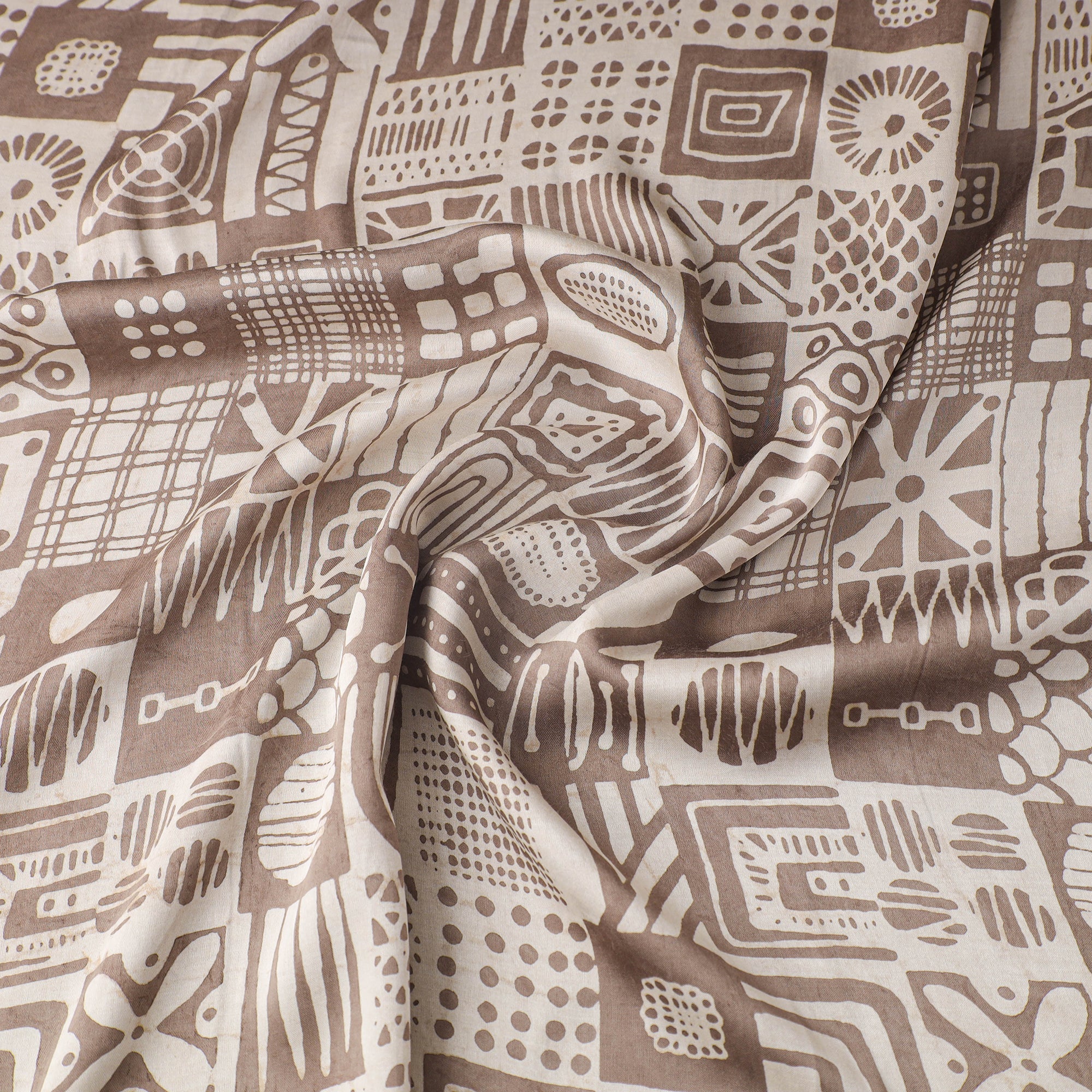 Brown - Natural Dyed Bagru Print Modal Silk Fabric 23