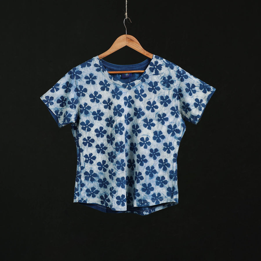 | Material | Blue natural dyed bindaas block art printed cotton v-neck t-shirt for women, made by skilled fourth-generation textile printers from Rajasthan. The designs are created using traditional hand block printing techniques, giving each piece a unique and distinctive look. Crafted using natural dyes, this t-shirt reflects a blend of heritage and contemporary style. The process involves a century-old technique, 15–22 steps, 25–40 artisans, and over 65 hours spread across nearly 12 days, along with ample sun and sand. Comfortable, breathable and versatile, it’s ideal for everyday wear. |