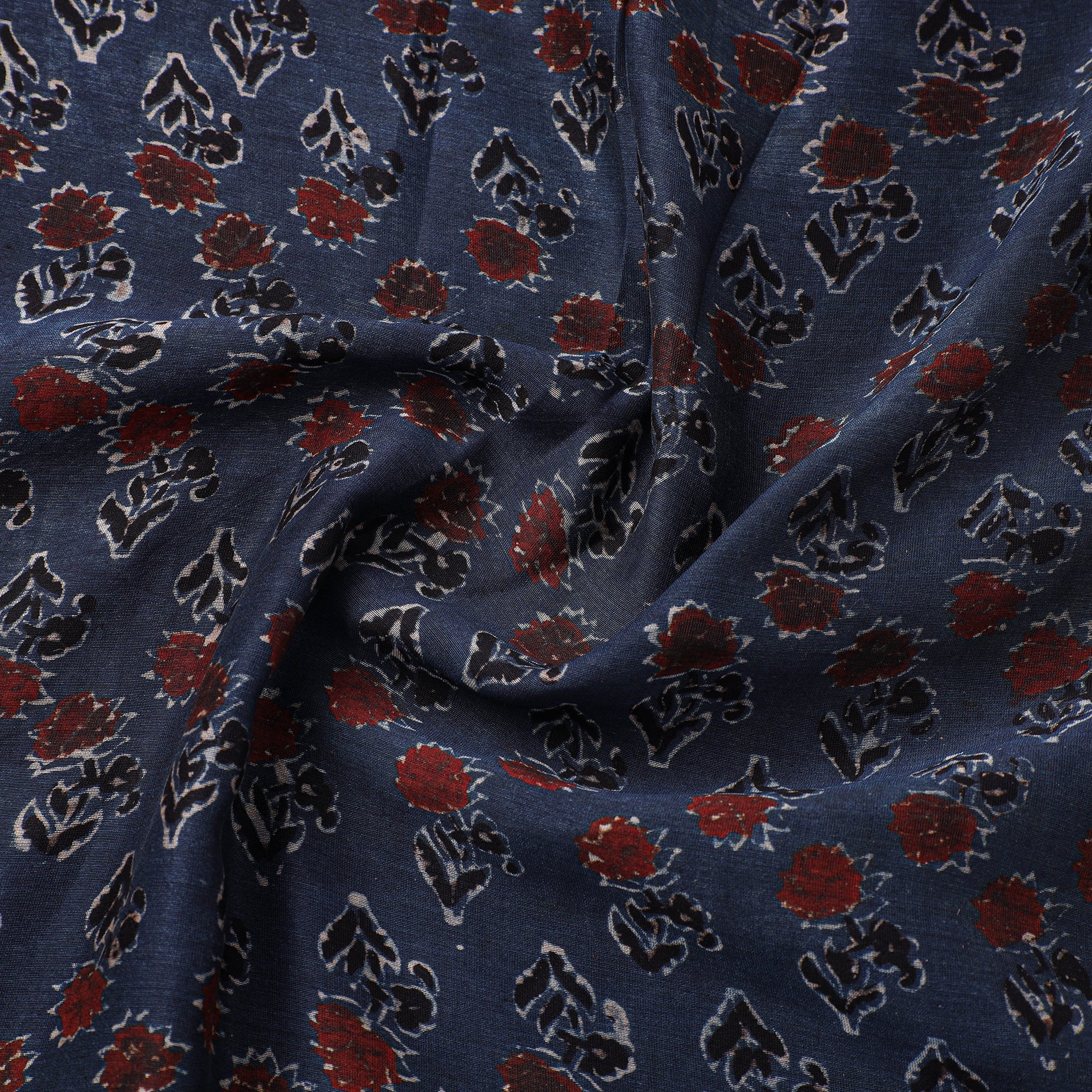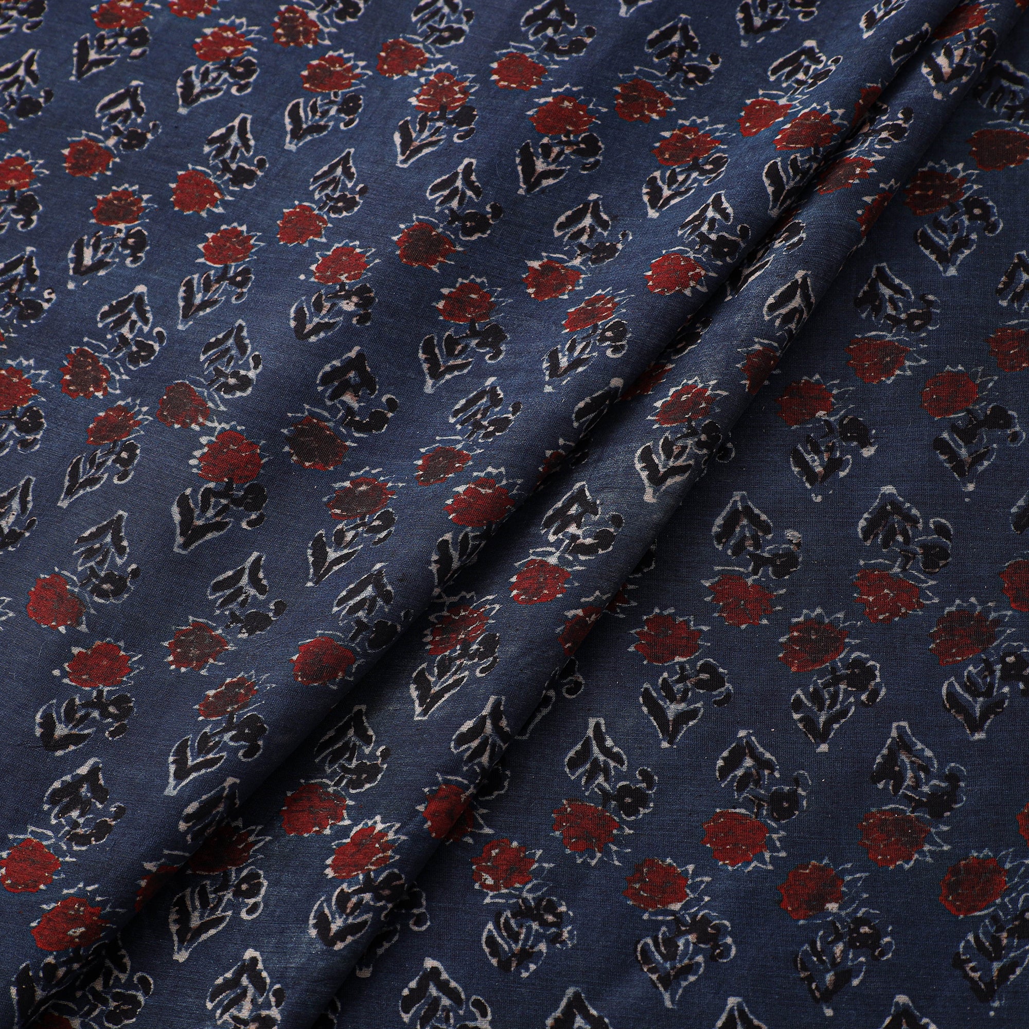 Blue ajrakh fabric is hand block-printed in Kutch using natural dyes and age-old techniques passed down through generations. Crafted with precision, each motif reflects Gujarat’s rich textile heritage. Made of chanderi silk and mercerized cotton blend, it's ideal for creating kurtas, shirts, dresses, or even elegant home decor accents.