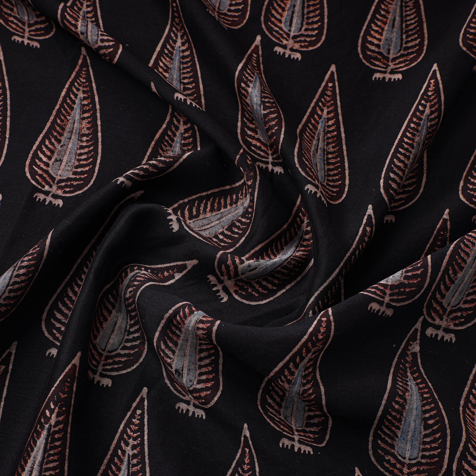 • Black - natural dyed chanderi silk fabric 07 - handcrafted
