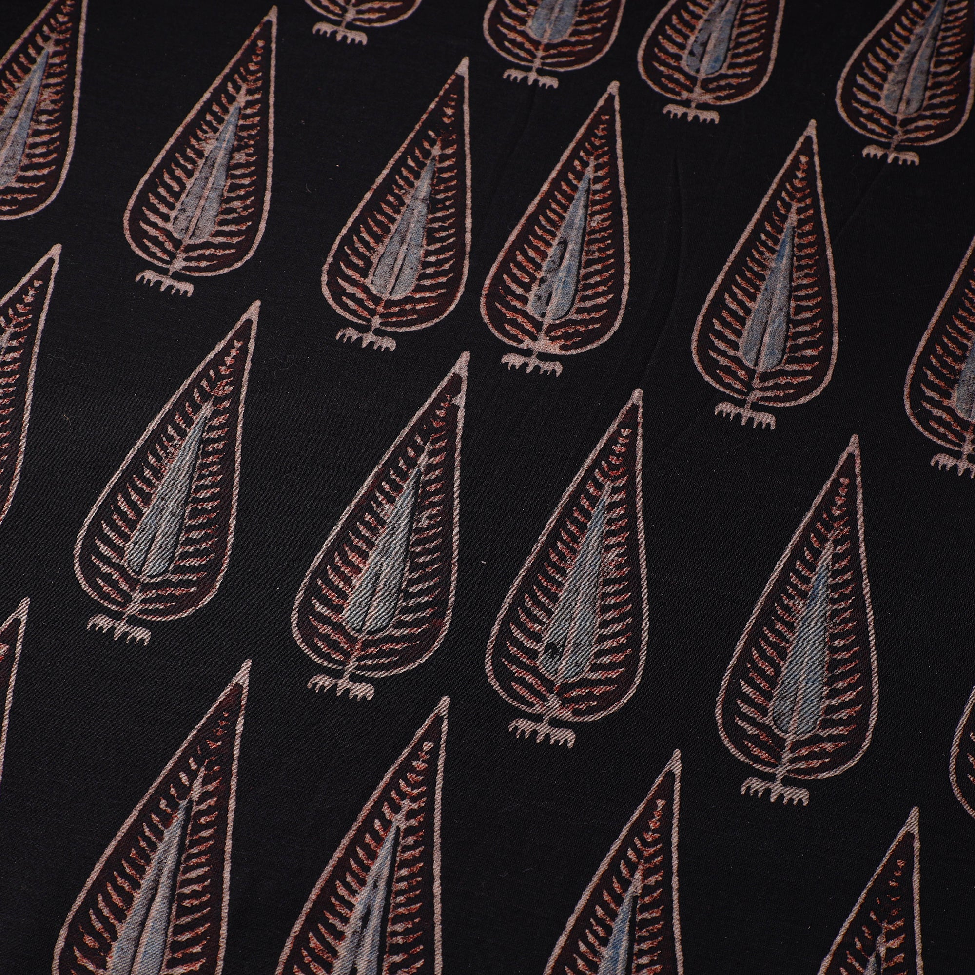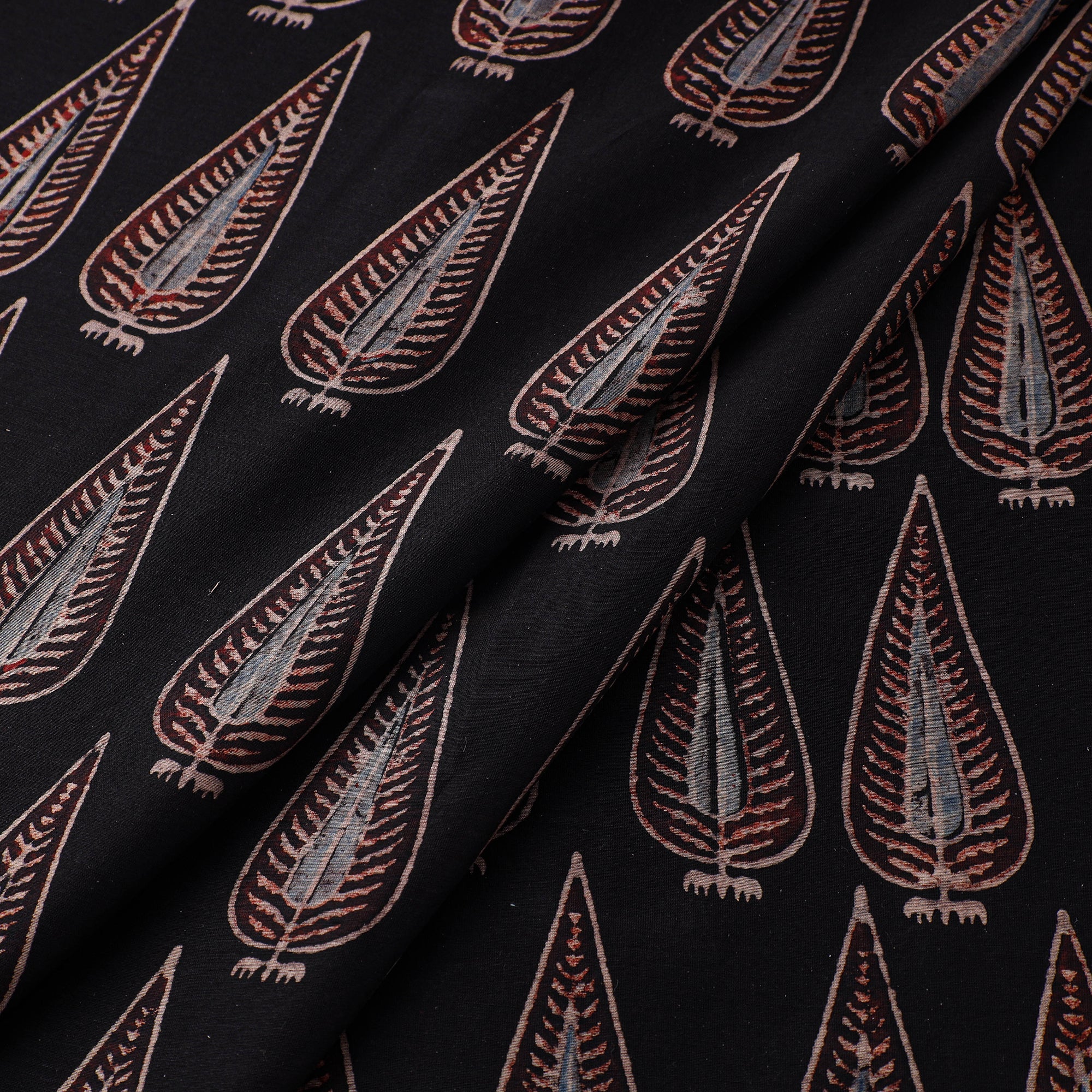 Black - Natural Dyed Block Print Chanderi Silk Ajrakh Fabric 07