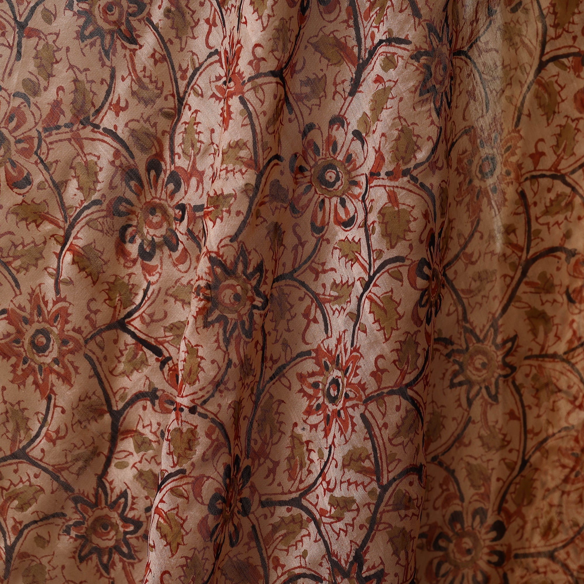 Beige - Natural Dyed Block Print Handloom Chanderi Silk Pedana Kalamkari Fabric 14