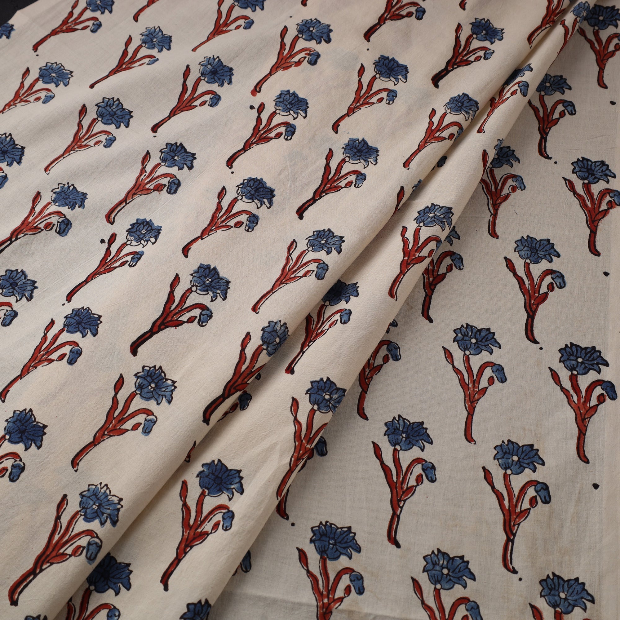 Discover beige ajrakh fabric, created in Kutch by master artisan Abdul Rauf Khatri, with centuries-old block printing and natural dyeing methods, this breathable cotton fabric blends heritage with comfort. Ideal for making kurtas, dupattas, or unique wearables, it's a beautiful choice for those who value culture,
