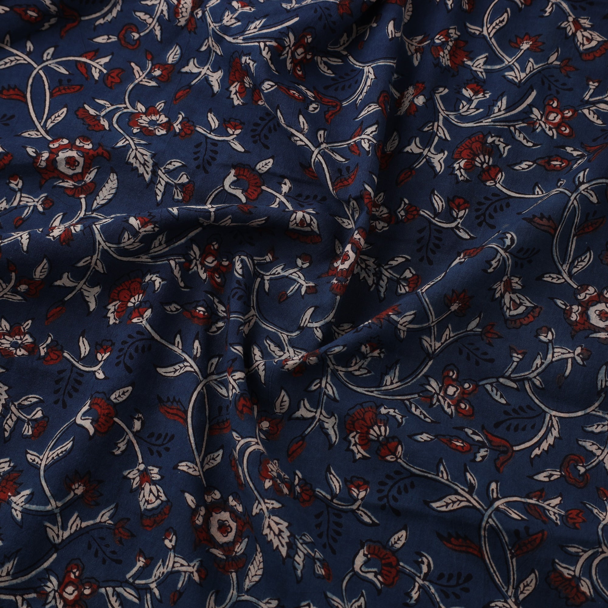 Discover blue ajrakh fabric, created in Kutch by master artisan Abdul Rauf Khatri, with centuries-old block printing and natural dyeing methods, this breathable cotton fabric blends heritage with comfort. Ideal for making kurtas, dupattas, or unique wearables, it's a beautiful choice for those who value culture,