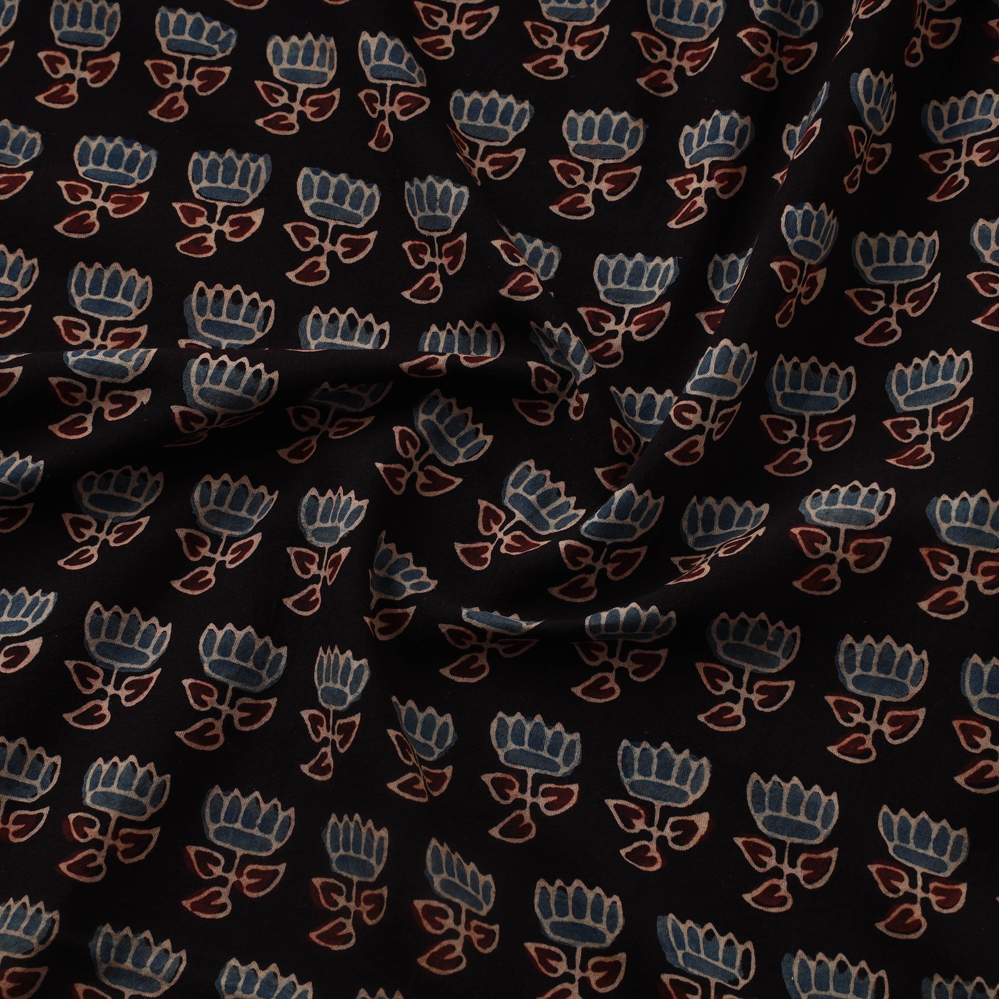 Black - Natural Dyed Block Print Cotton Ajrakh Fabric 17