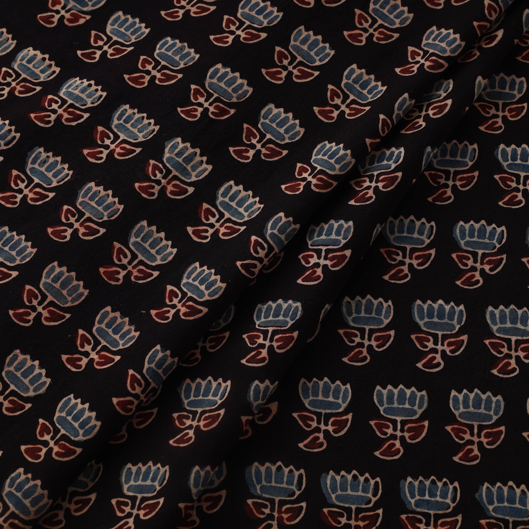 • Black Natural Dyed Block Print Cotton Ajrakh Fabric