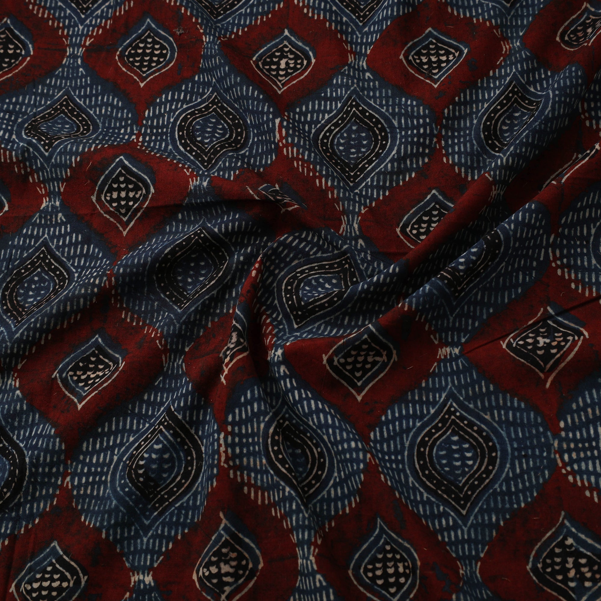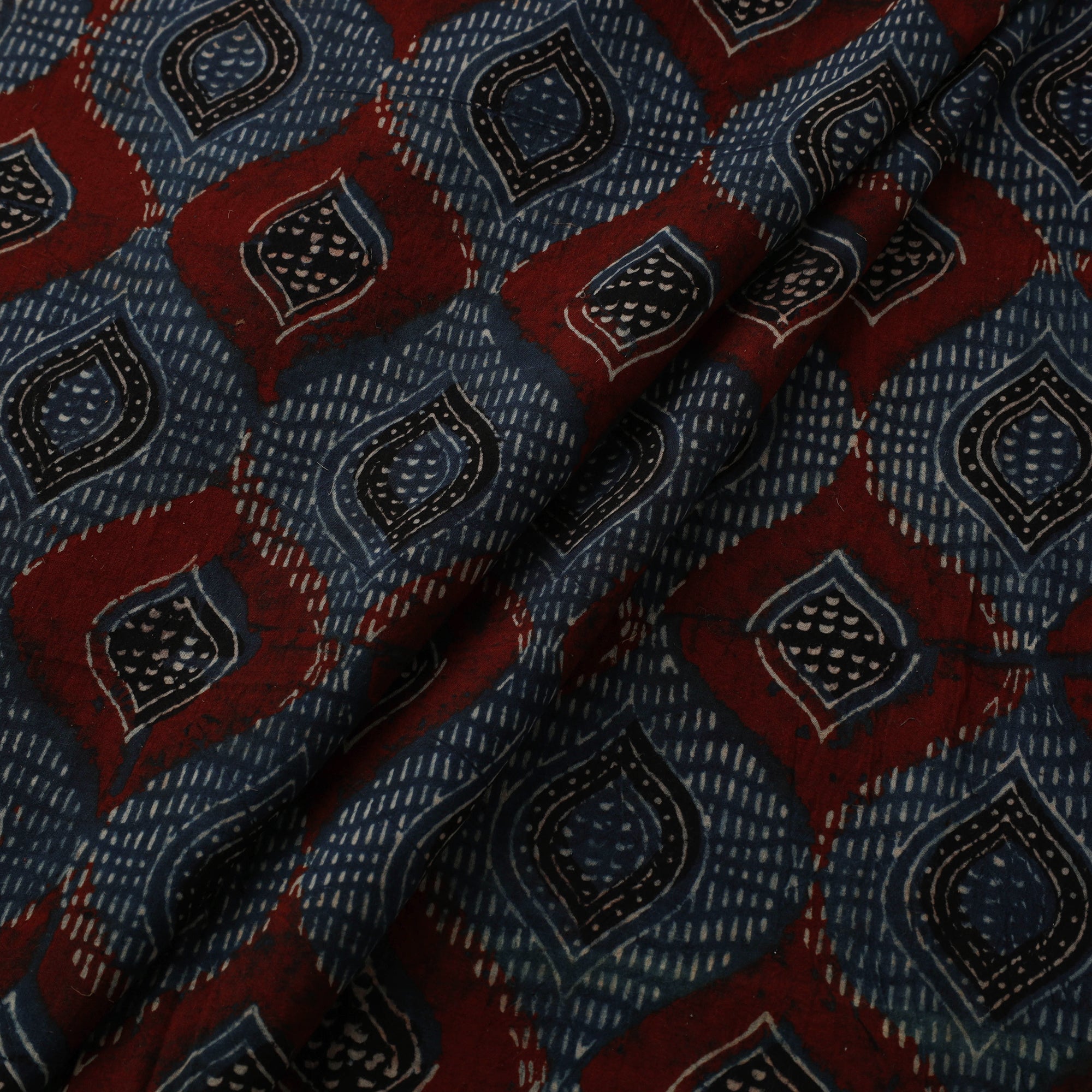 Ajrakh is a well-known traditional vegetable dyeing that resists block-printing techniques on cloth. Originated in Kutch, It is nearly around 4,500 years old practised by Khatri community of Kutch and Sikh.