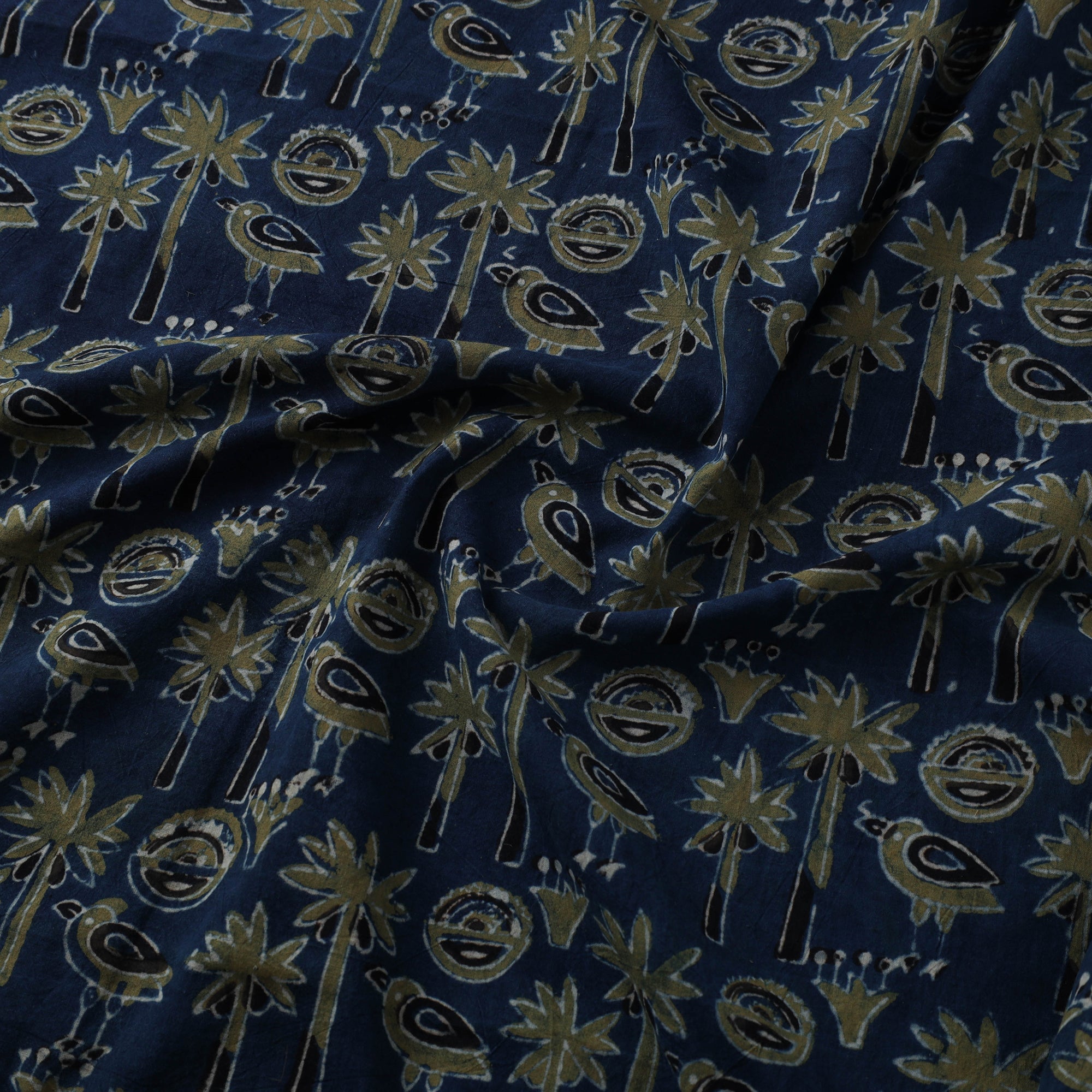 This blue ajrakh cotton fabric from Kutch, Gujarat, is made using natural dyes and an ancient resist hand-block printing technique rooted in centuries of tradition. Ajrakh is known for its earthy tones and intricate patterns, making it perfect for kurtas, dresses, or home decor.