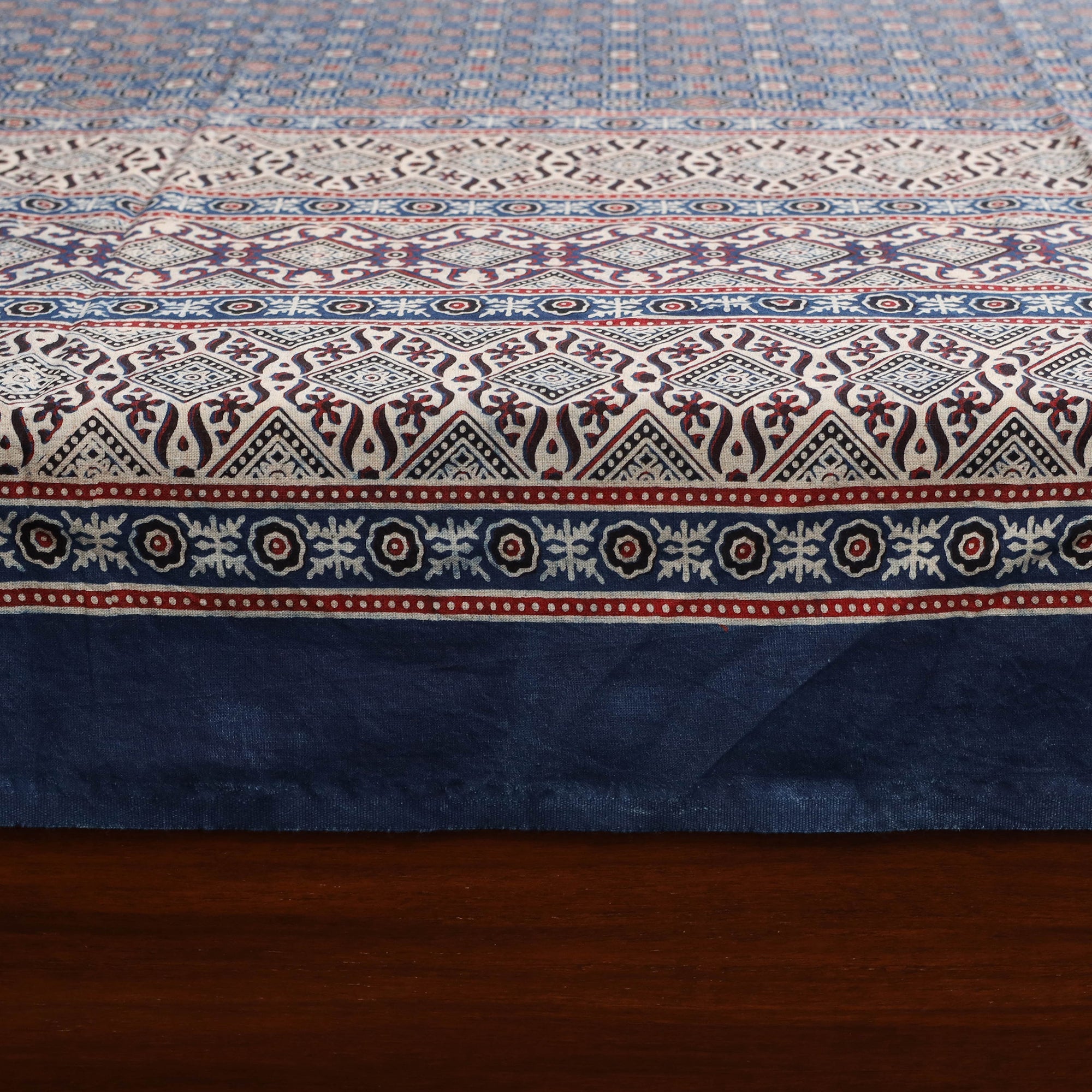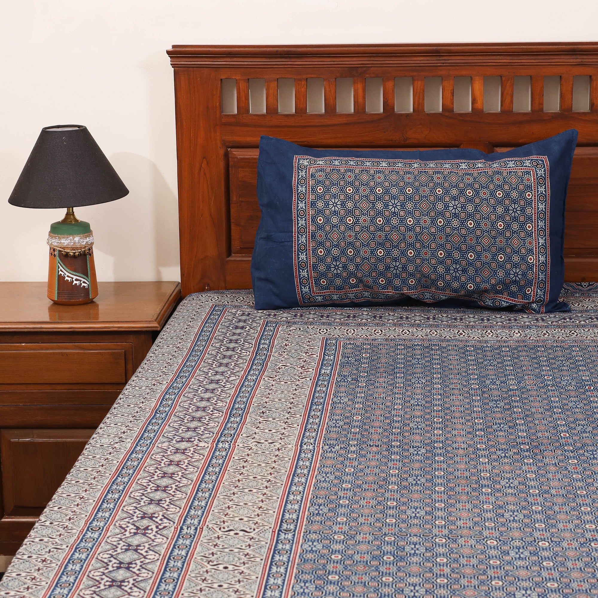 Blue - Natural Dyed Block Print Cotton Double Ajrakh Bed Sheet Set 02