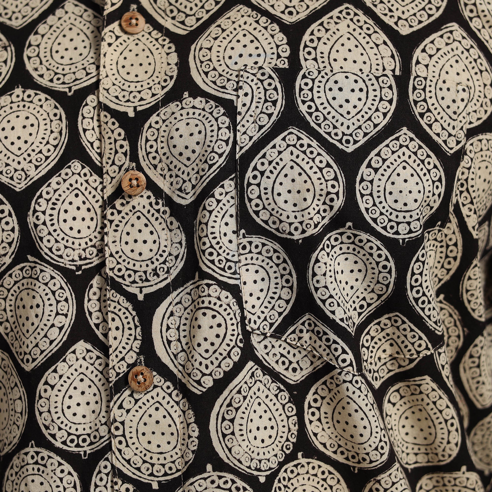 Made using the age-old bagru block printing technique from Rajasthan, this beige naturally dyed cotton shirt blends tradition with everyday ease. Designed with a regular collar, half sleeves, and a functional front pocket, it’s perfect for casual wear. Wooden buttons add a natural touch to its appeal. A thoughtful pick for those who appreciate handmade charm and Indian craftsmanship.