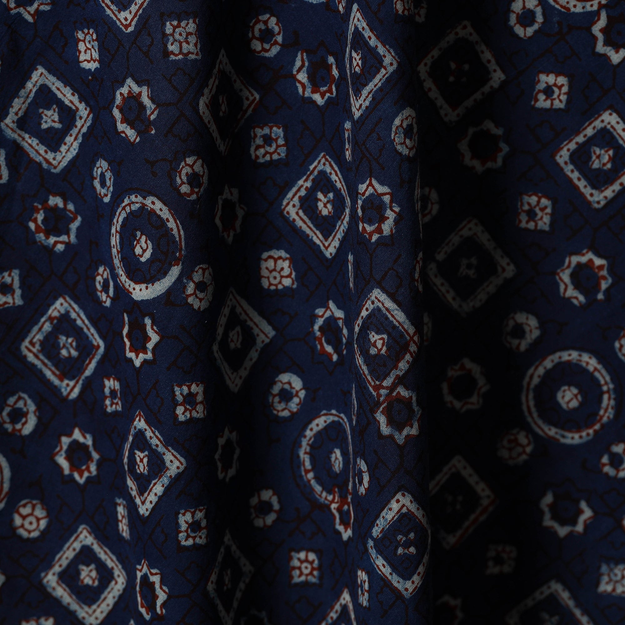 Traditional blue nandana block print fabric from Madhya Pradesh is made of cotton and features beautiful designs created with wooden blocks and natural dyes. The printing uses a special mud-resist method, giving it a unique look. Each piece reflects India’s rich textile tradition and the skill of local artisans. Ideal for making ethnic outfits or adding charm to home decor.