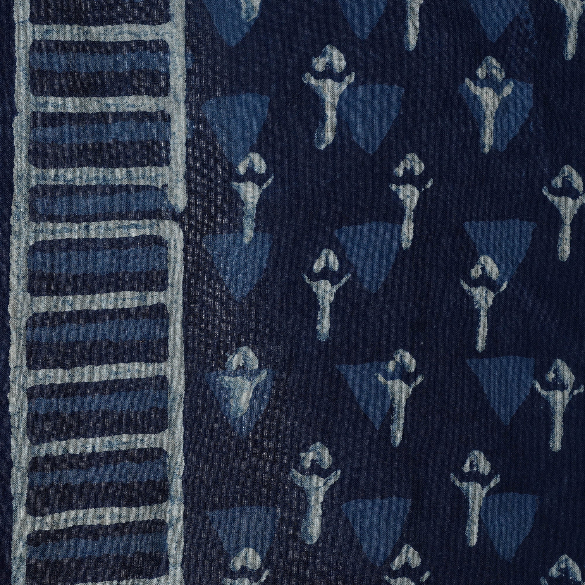 Blue - Natural Dyed Block Print Cotton Nandana Fabric 03