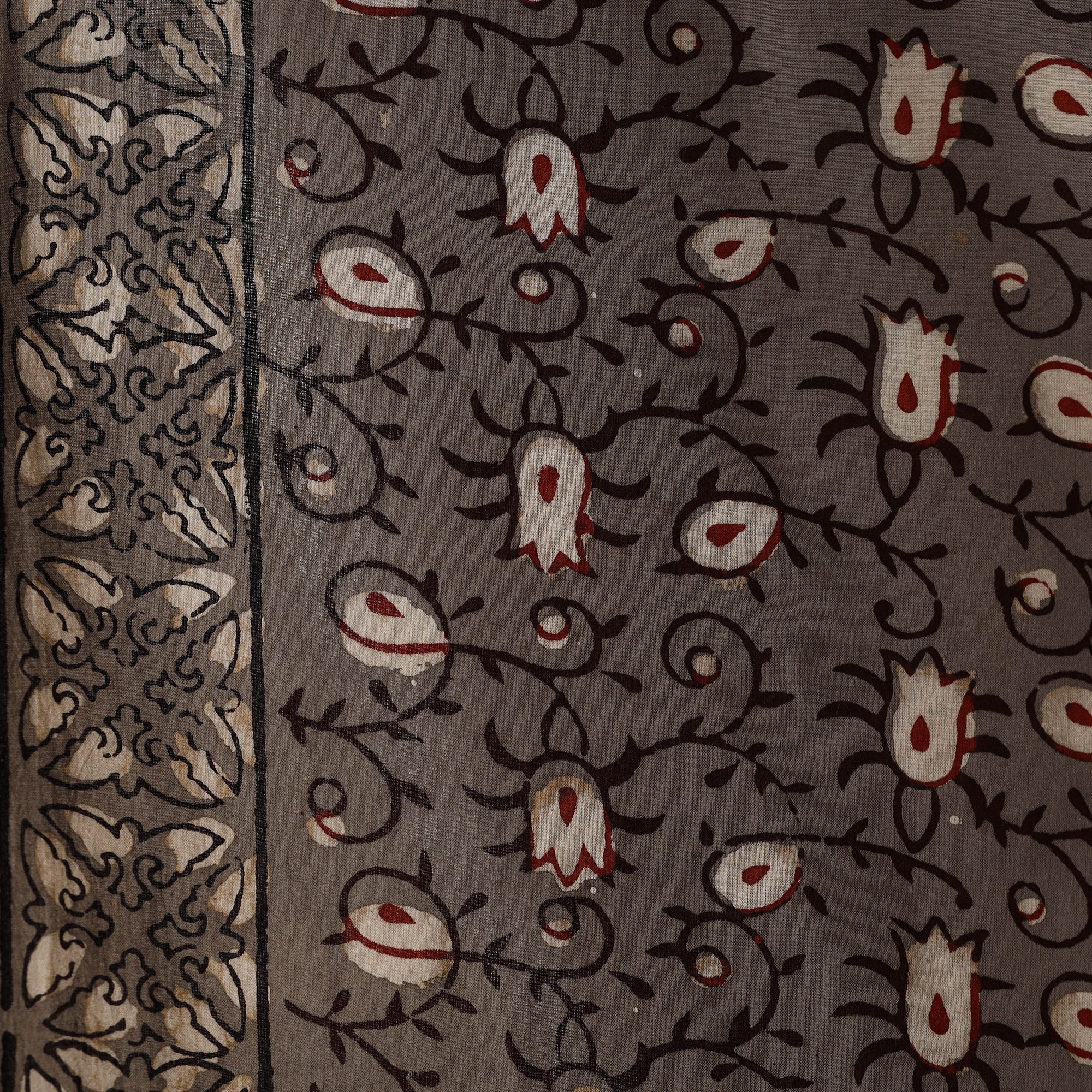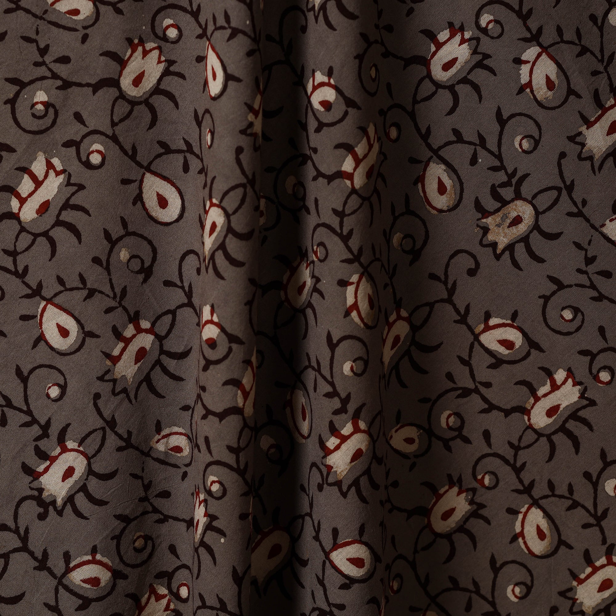 Brown - Natural Dyed Block Print Cotton Nandana Fabric 08