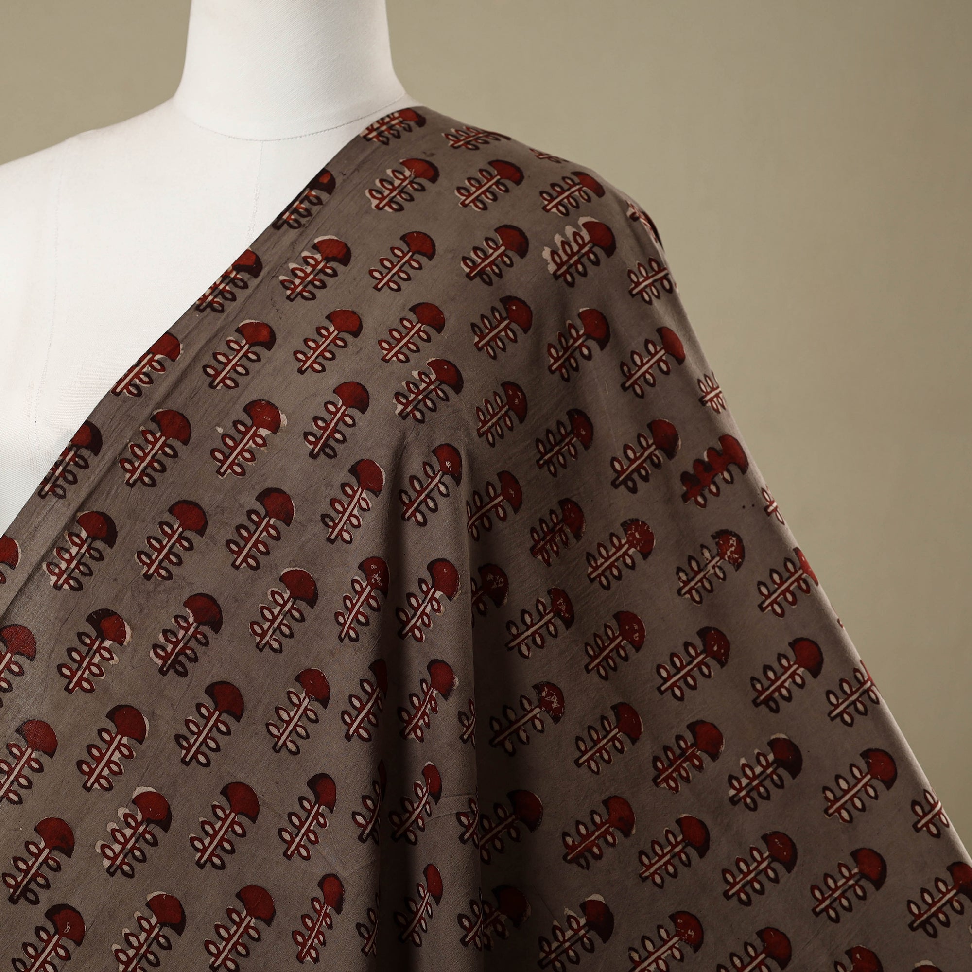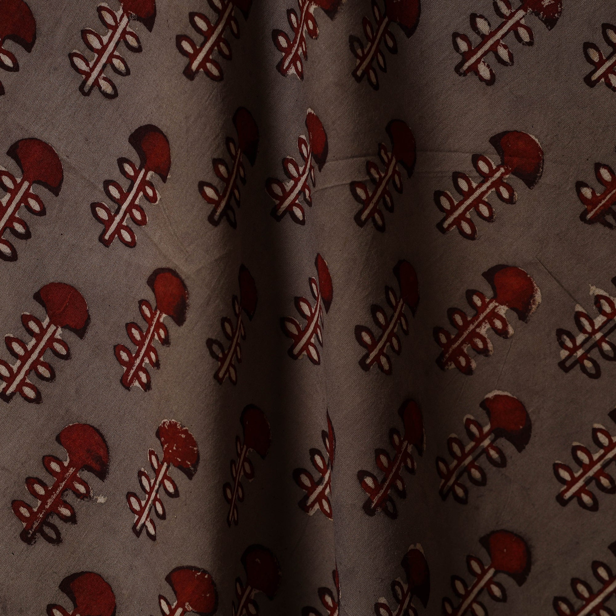 Brown - Natural Dyed Block Print Cotton Nandana Fabric 12