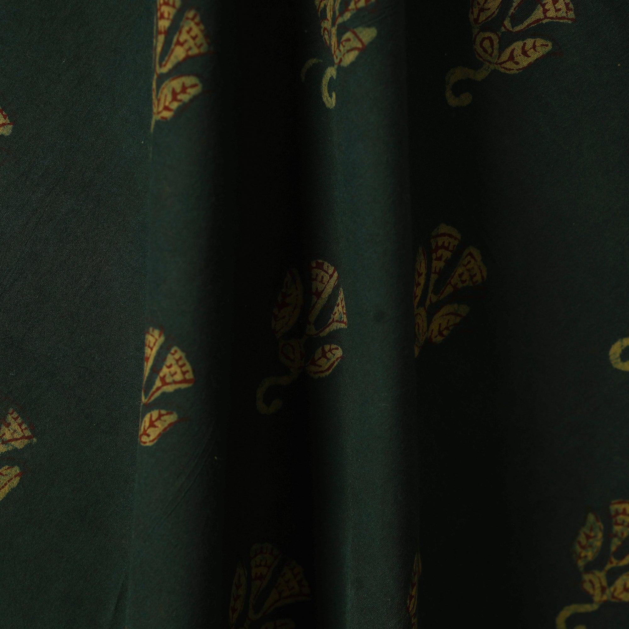 Traditional green nandana block print fabric from Madhya Pradesh is made of cotton and features beautiful designs created with wooden blocks and natural dyes. The printing uses a special mud-resist method, giving it a unique look. Each piece reflects India’s rich textile tradition and the skill of local artisans. Ideal for making ethnic outfits or adding charm to home decor.