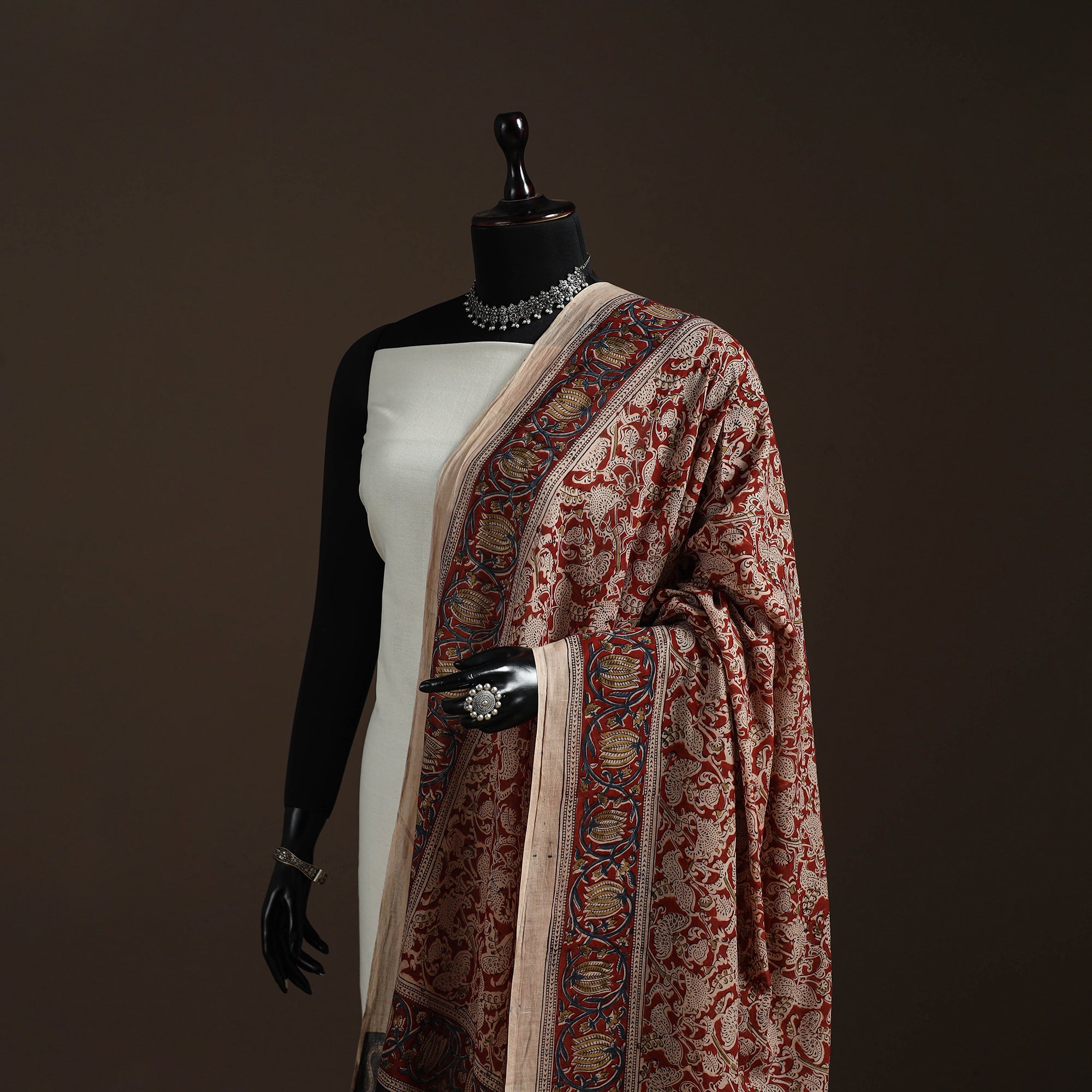 • Natural dyed cotton pedana kalamkari dupatta 17