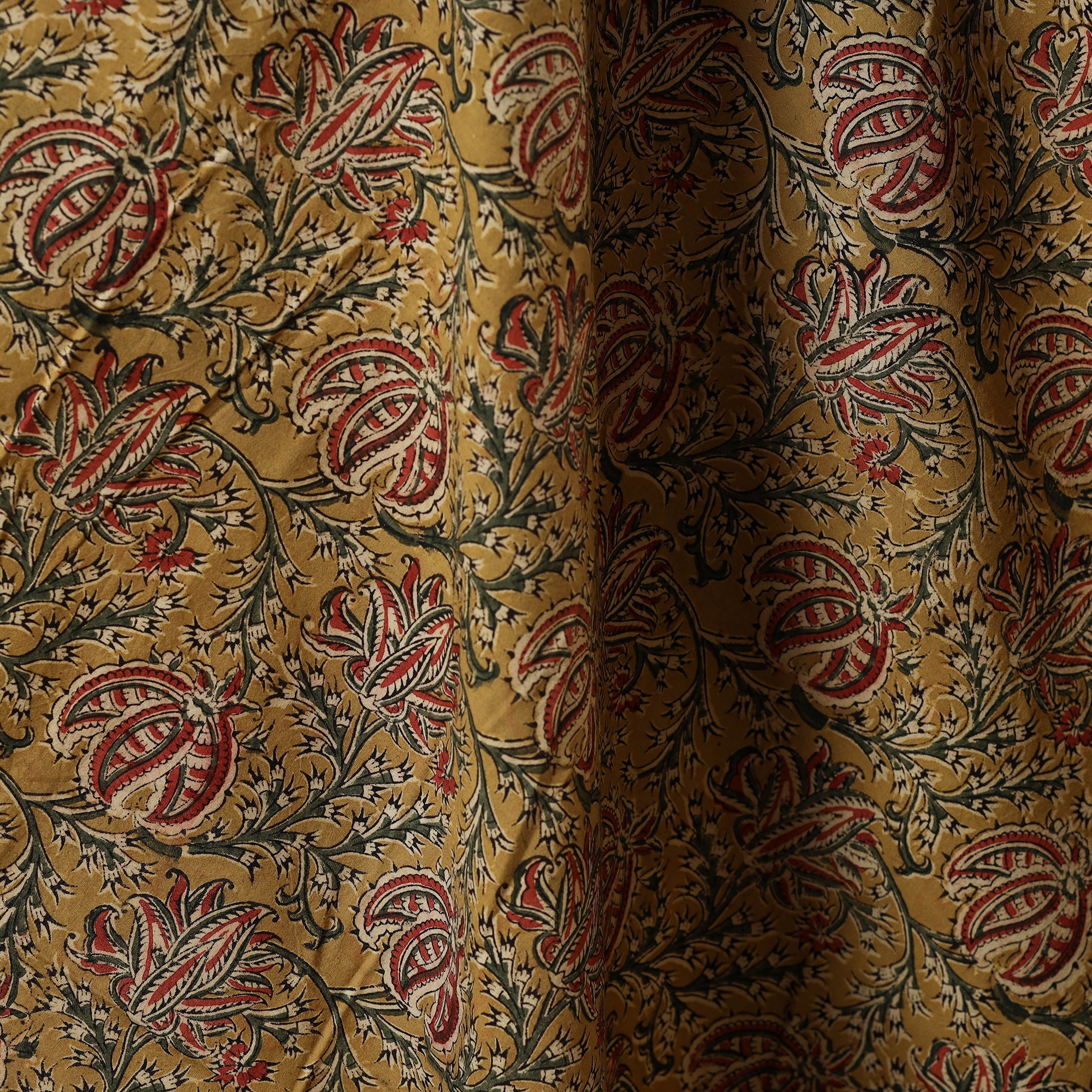 Kalamkari is a type of hand-painted or printed cotton fabric produced in Andhra Pradesh. This is a traditional printing method on cotton fabrics using natural materials without adding chemicals to cotton fabrics.