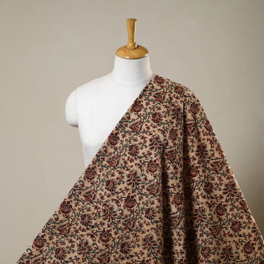 Beige - Natural Dyed Block Print Cotton Pedana Kalamkari Fabric 12