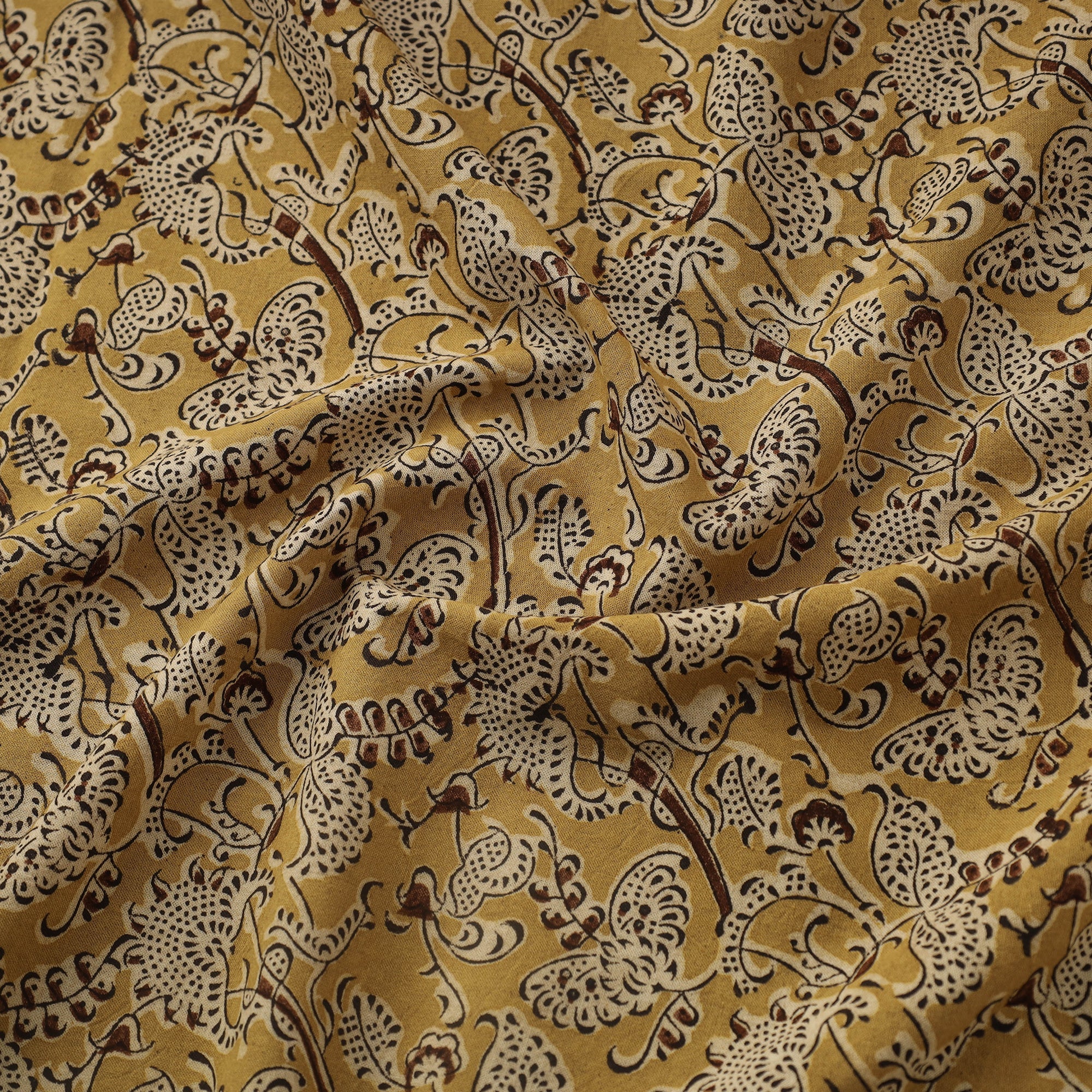 Experience the charm of Indian block printing with this beautifully crafted yellow cotton pedana kalamkari fabric. Featuring traditional motifs and printed using natural dyes by Pedana’s master artisans, it ensures both beauty and sustainability. Perfect for creating unique garments or home decor.