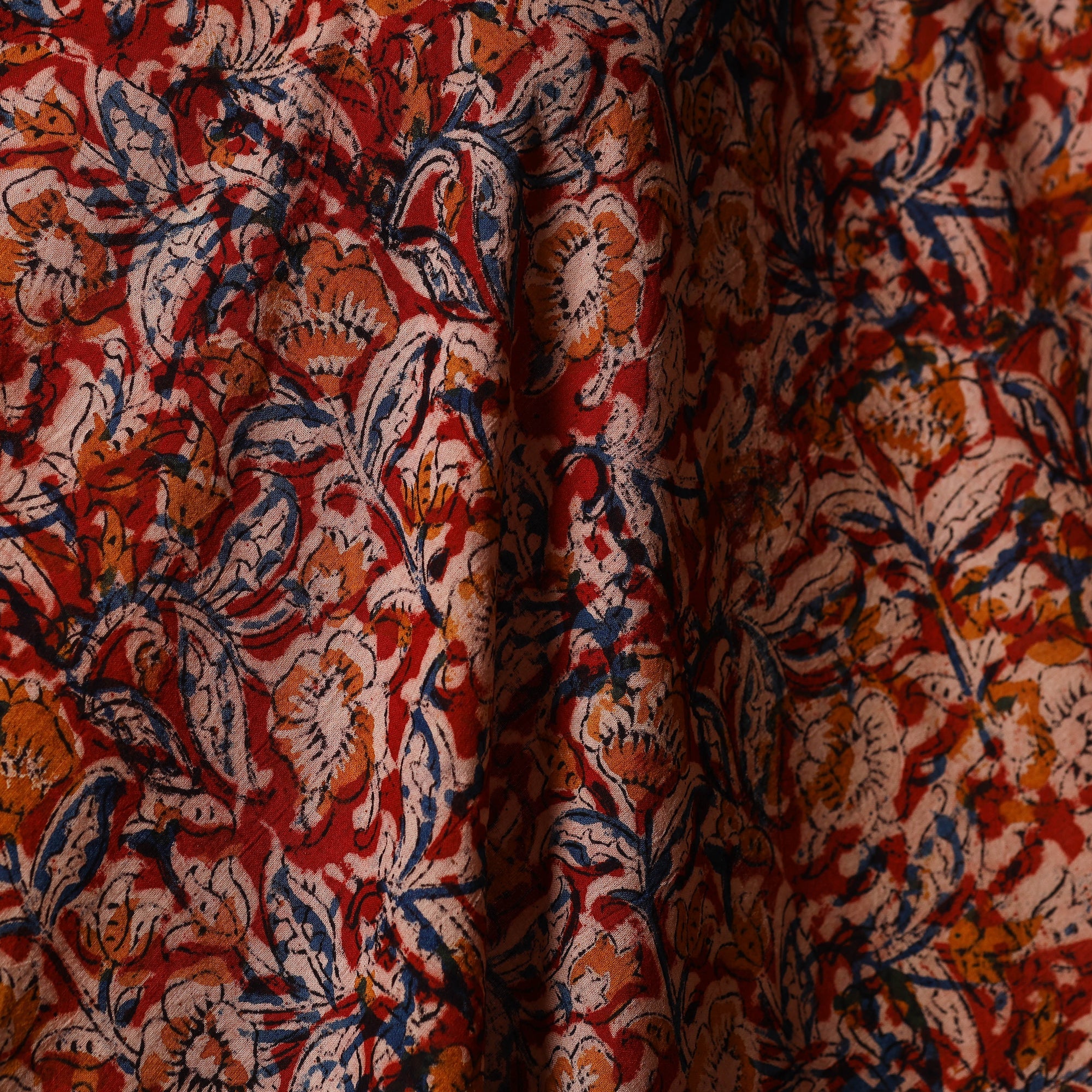 Red - Natural Dyed Block Print Cotton Pedana Kalamkari Fabric 16