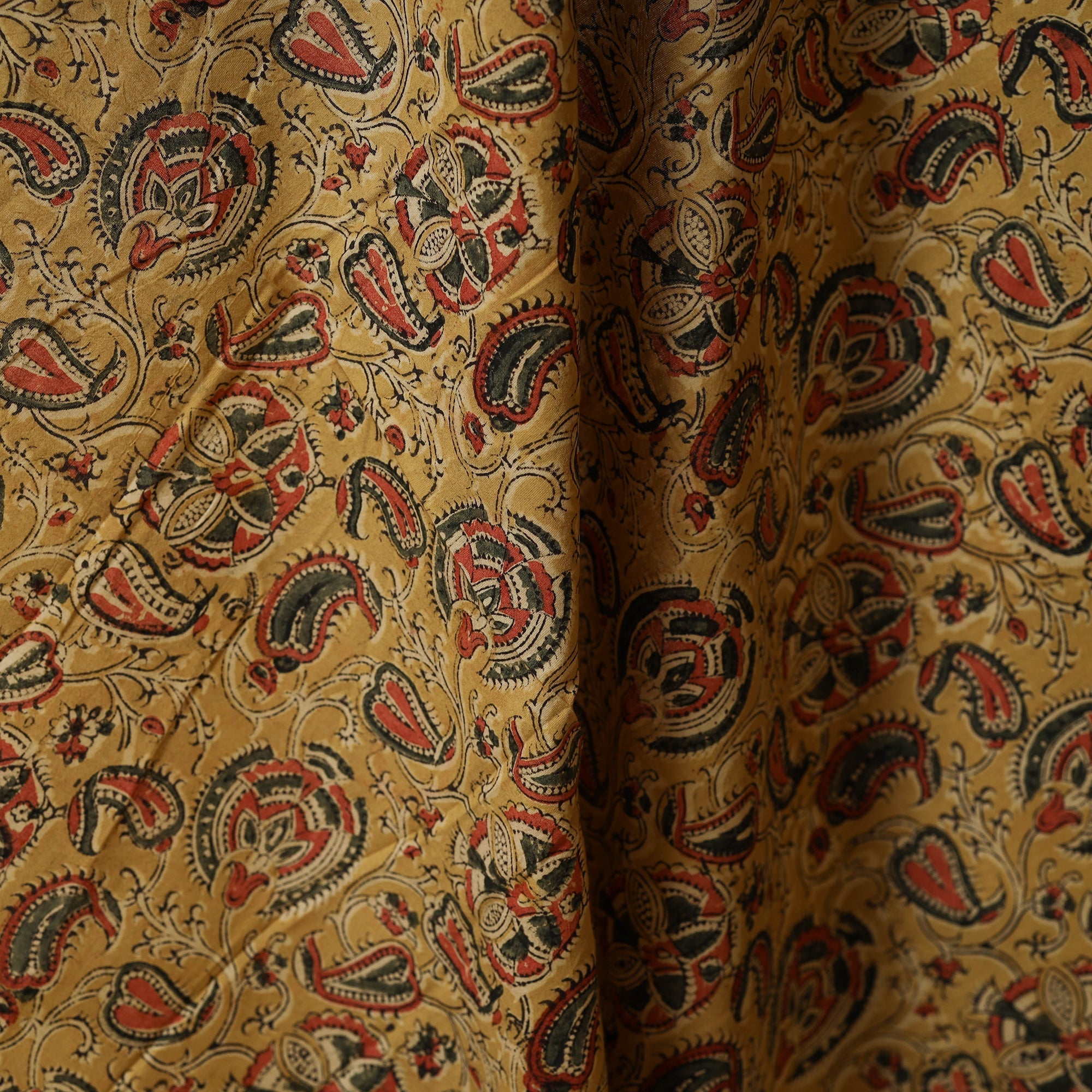 • Yellow - natural dyed cotton pedana kalamkari fabric 17