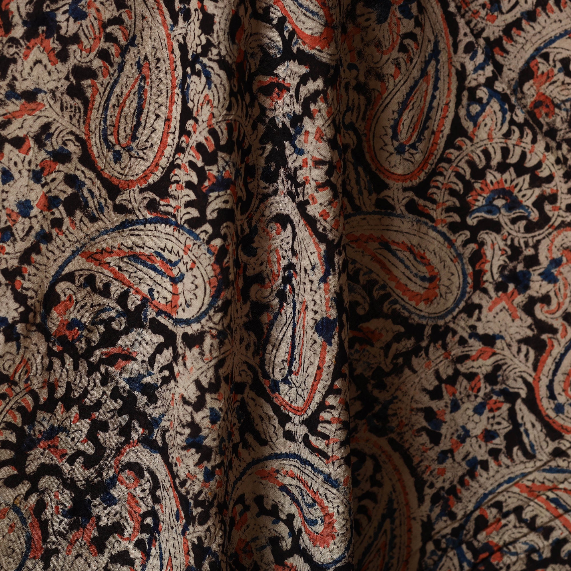 Experience the charm of Indian block printing with this beautifully crafted black cotton pedana kalamkari fabric. Adorned with traditional motifs and created using natural dyes by Pedana’s master artisans, it reflects both beauty and sustainability. Ideal for making distinctive garments or elegant home decor.