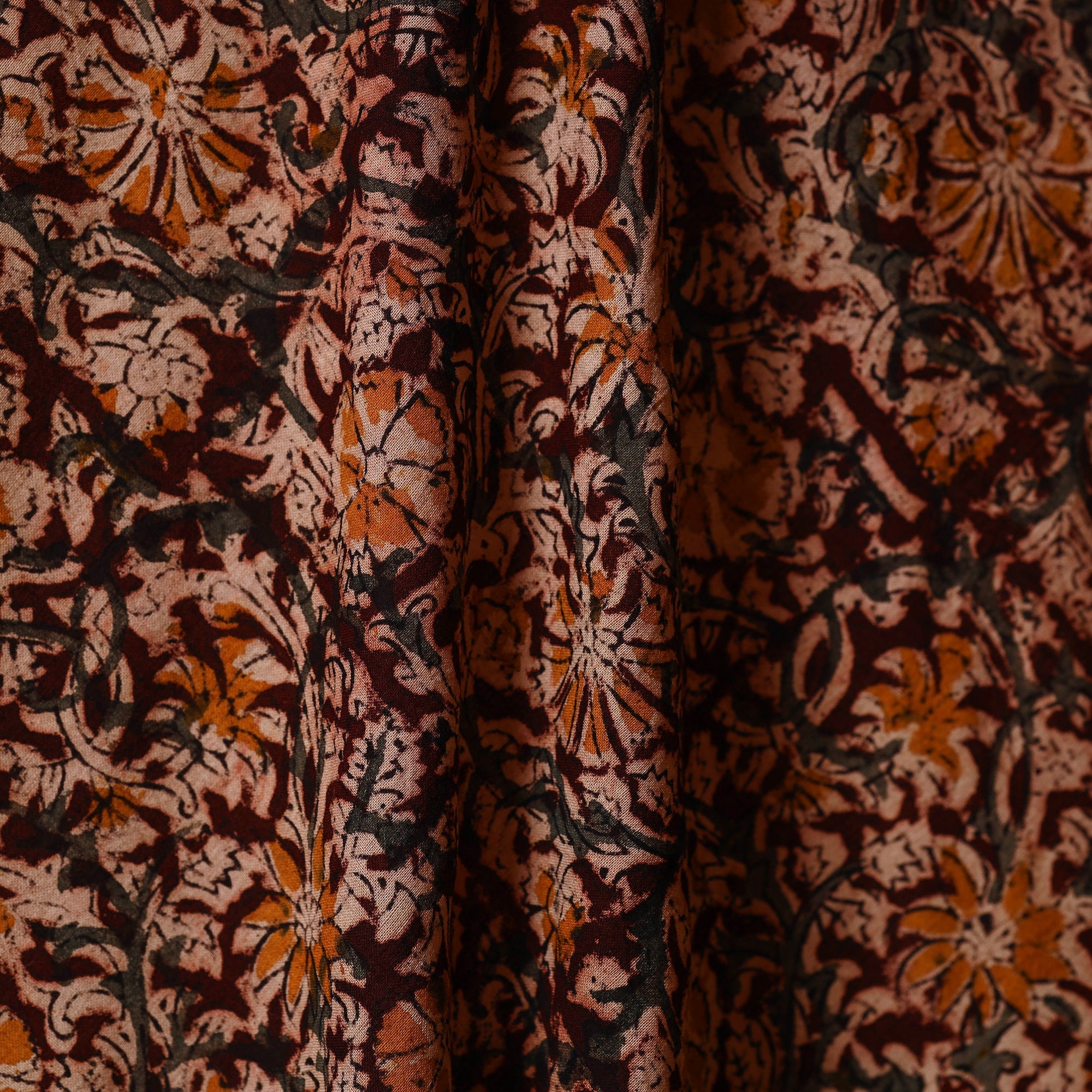 Brown - Natural Dyed Block Print Cotton Pedana Kalamkari Fabric 27