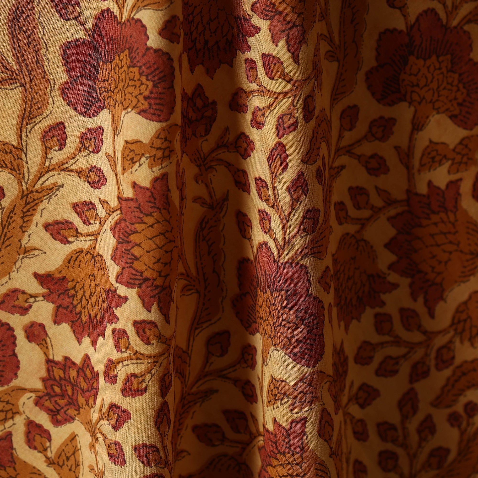Beige - Natural Dyed Block Print Cotton Vanaspati Bagru Fabric 02