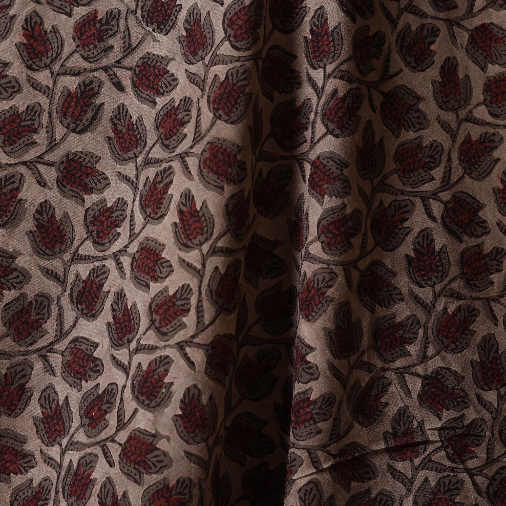 This brown block-printed cotton vanaspati bagru fabric is crafted in Rajasthan using traditional mud-resist techniques and natural dyes. Each piece showcases the rich heritage of Bagru artisans,. Made from cotton, it is ideal for creating stylish, sustainable clothing, home decor, or accessories.