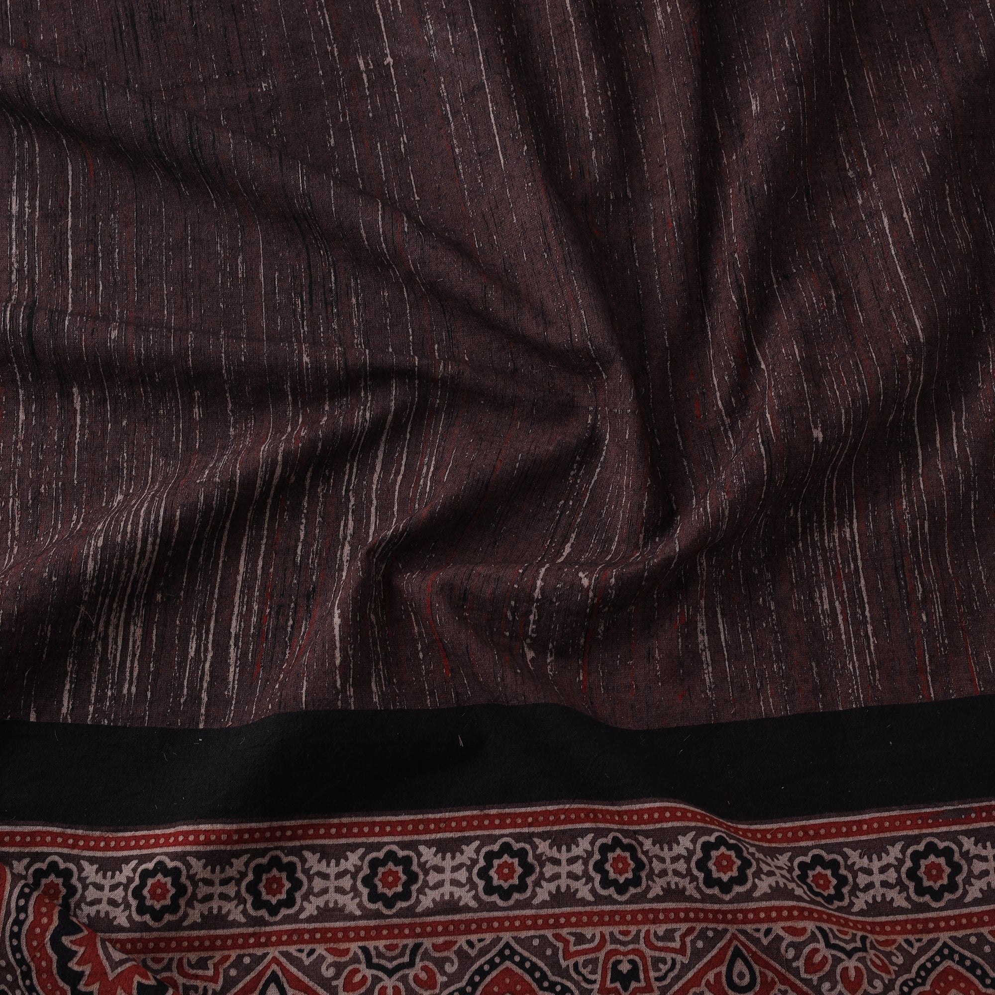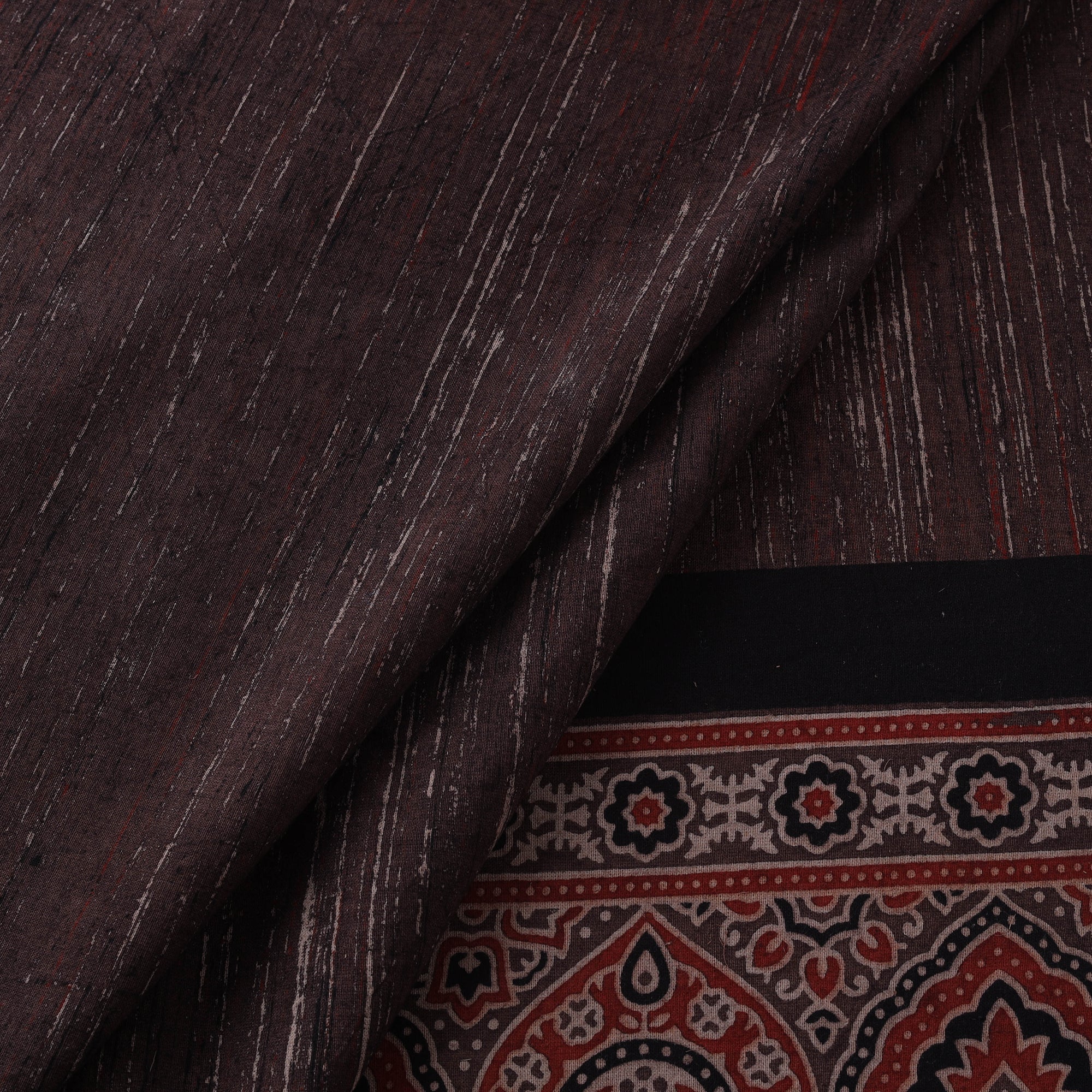 Ajrakh cotton brush print fabric from Kutch, Gujarat, is hand block printed by skilled artisans using traditional methods and natural dyes. This craft is believed to be around 4,500 years old and has its origins in Sindh, later developing in Kutch and Barmer, Rajasthan. Ajrakh has traditionally been worn by the Maldhari community of Bhuj. The fabric is made through a detailed, multi-step dyeing process that helps achieve deep, lasting colours. With a soft brush-style texture and ajrakh patterns, this breathable cotton fabric is suitable for kurtas, dresses, shirts and home decor.