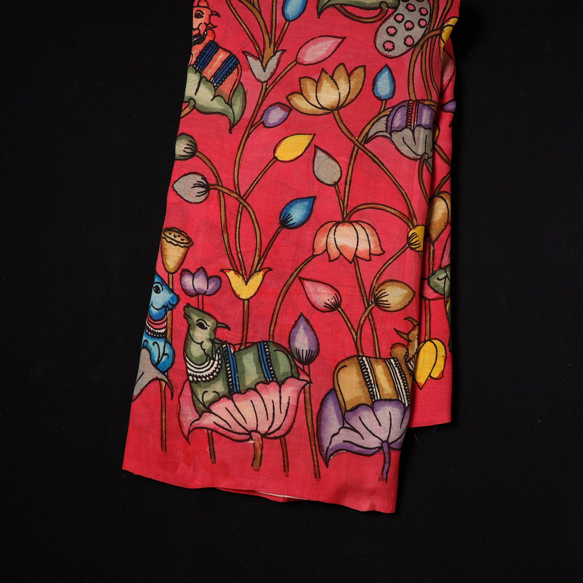 Red - Desi Tussar Silk Handpainted Srikalahasti Pen Kalamkari Fabric in Natural Dyed Pure Handloom 23