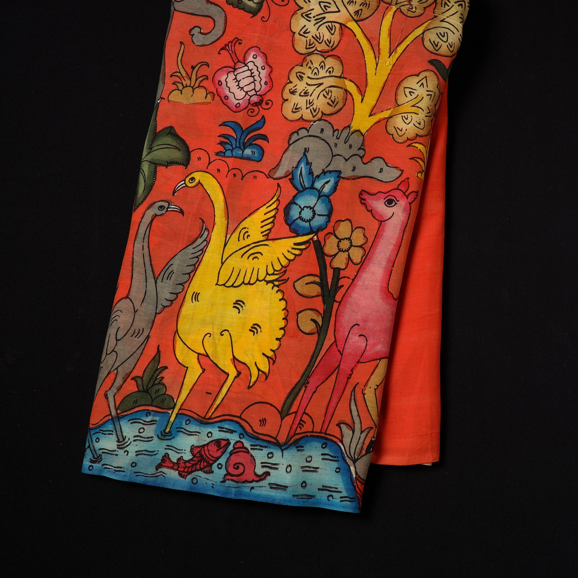 • Red - natural dyed chanderi silk handpainted srikalahasti