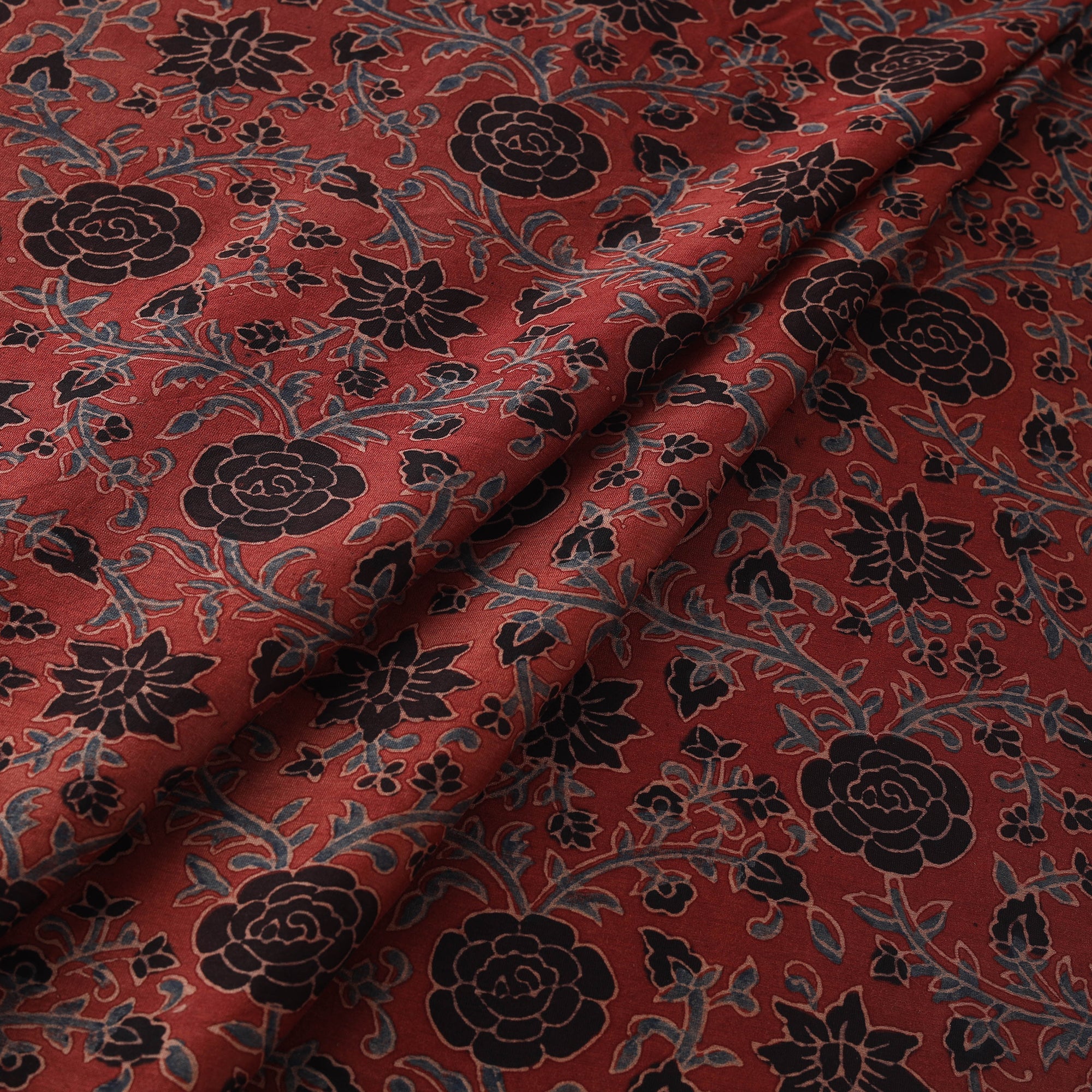 Ajrakh hand block print chanderi silk cotton fabric by Riyaz Abdulmajid Khatri is crafted using natural dyeing and resist block-printing techniques. This ancient craft is believed to be over 4,500 years old, with Ajrakh artisans in India originally migrating from Sindh to the Kutch region of Gujarat and Barmer in Rajasthan. Ajrakh is also the traditional attire of the Maldhari pastoral community of Bhuj. The process is long and intricate, involving multiple stages where each layer of colour is printed only after a resting period, allowing the fabric to fully absorb the dye. It is ideal for creating kurtas, shirts, dresses or even home decor items.