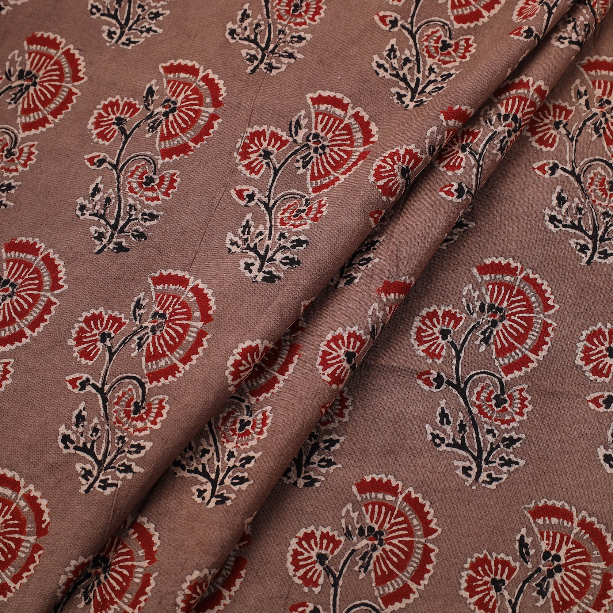 This brown block-printed cotton ajrakh fabric, meticulously crafted by expert artisans in Gujarat’s Kutch region. Made using natural dyes, this eco-friendly fabric preserves a 4,500-year-old tradition of resist-dyed block printing. This exquisite fabric is perfect for custom outfits, upholstery, and creative projects, seamlessly blending cultural heritage with sustainability.