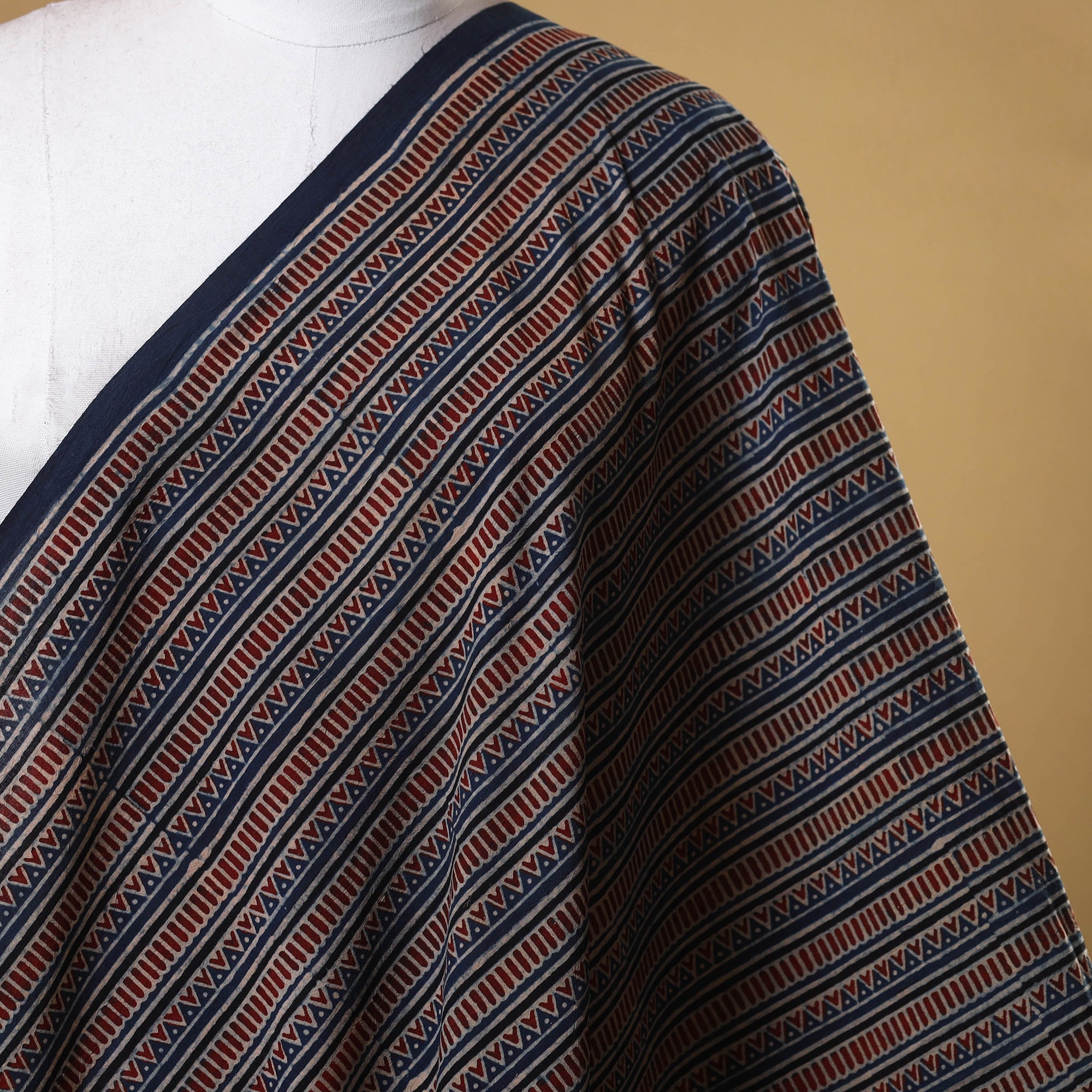Ajrakh is a well-known traditional vegetable dyeing that resists block-printing techniques on cloth. Originated in Kutch, It is nearly around 4,500 years old practised by Khatri community of Kutch and Sikh.