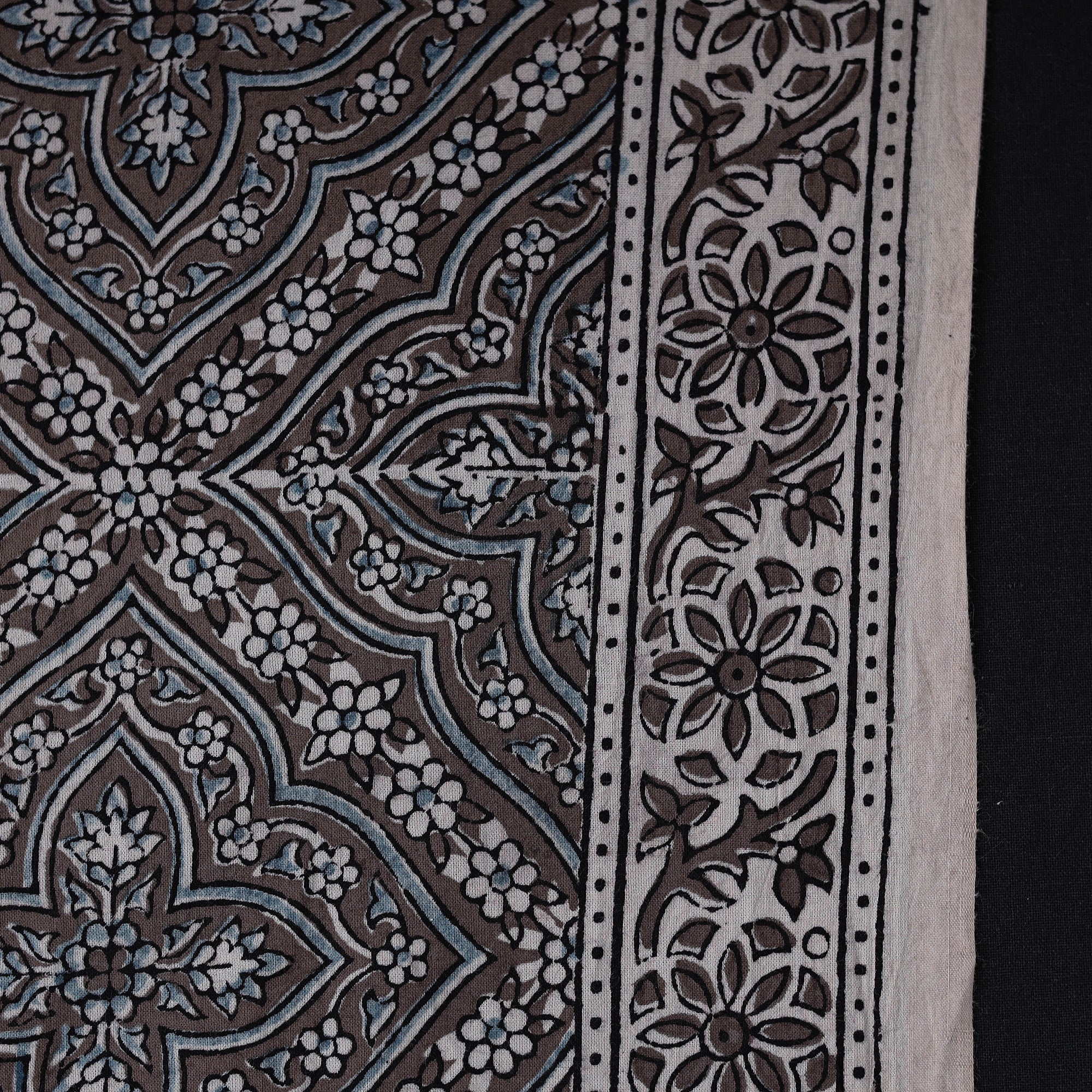 Natural dyed cotton Indigo bagh print fabric, crafted by Umar Faruk Khatri using traditional hand block printing techniques in Bagh, Madhya Pradesh. This fabric is perfect for crafting sarees, suits, dupattas, or contemporary outfits.