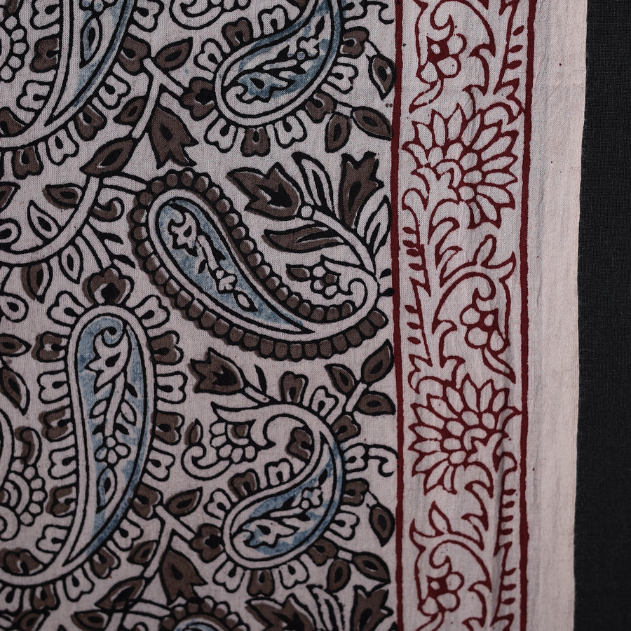 Bagh layouts are dramatic with the use of black and red alternately on a white background. Its production process is manually painstaking. Though the techniques and designs are age-old the prints retain their contemporary appeal.